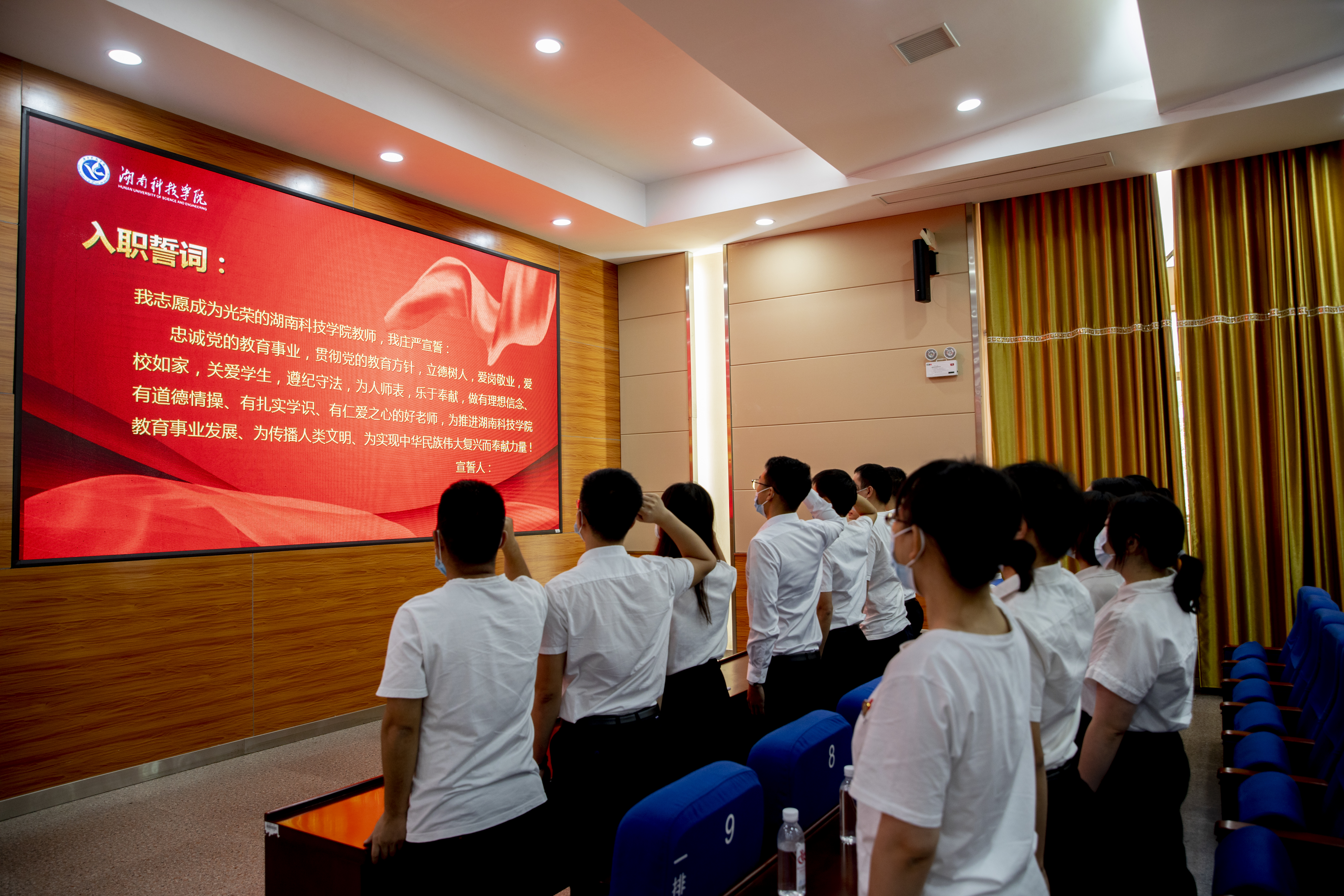 大会在庄严的国歌声中拉开帷幕,2021年新进教师进行了入职宣誓,大家表示要做有理想信念、有道德情操、有扎实知识、有仁爱之心的好老师。