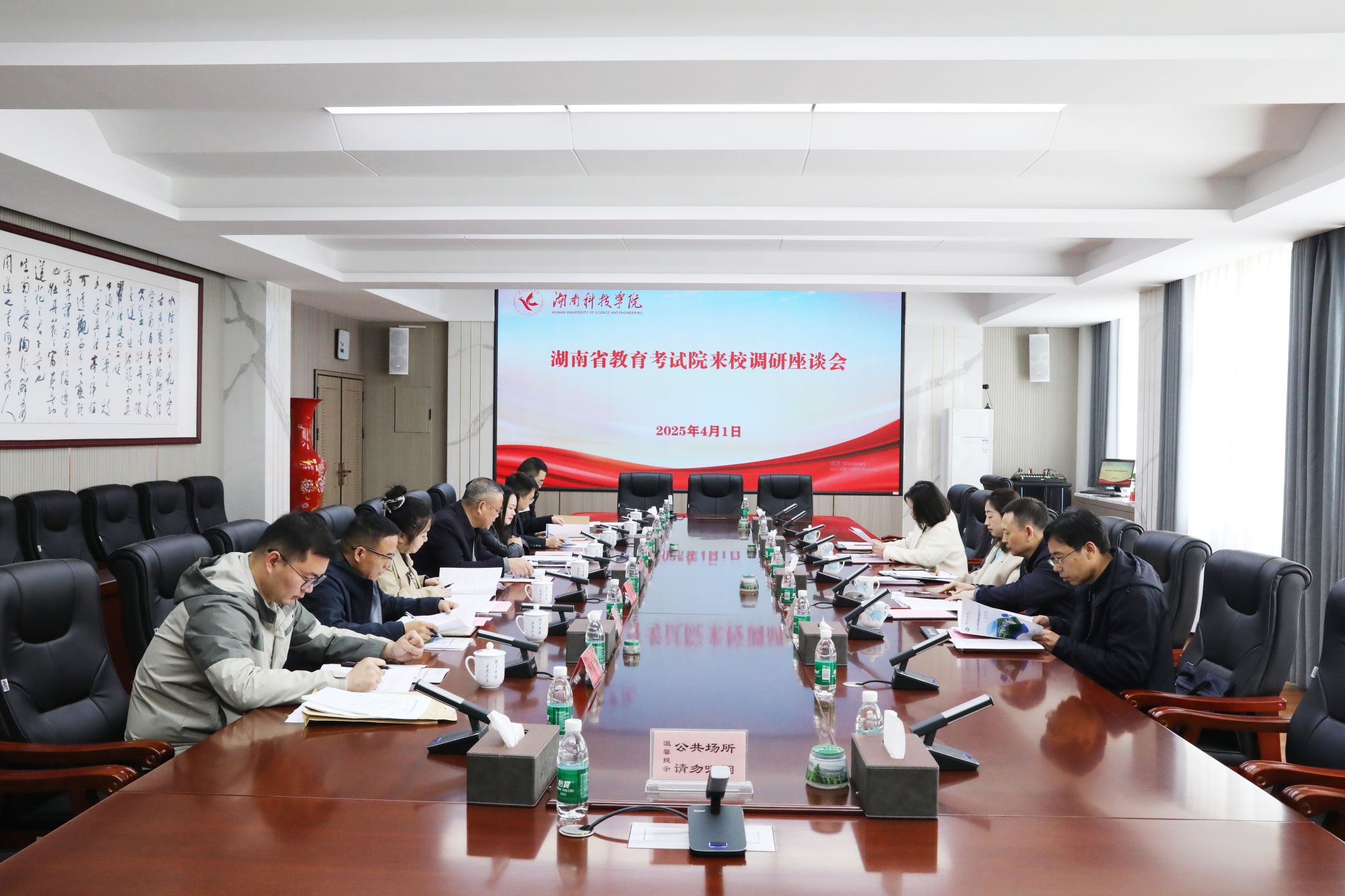4月1日上午,湖南省教育考试院副院长刘婕,成人高校招生考试处处长尹坚毅,自学考试处副处长唐芬芬到bat365官网检查指导2025年普通高校专升本考试考前准备工作,并调研2026年研究生招生考试工作推进情况。永州市教育考试院院长许咏梅、副院长蒋程陪同检查。副校长何福林主持检查汇报会。