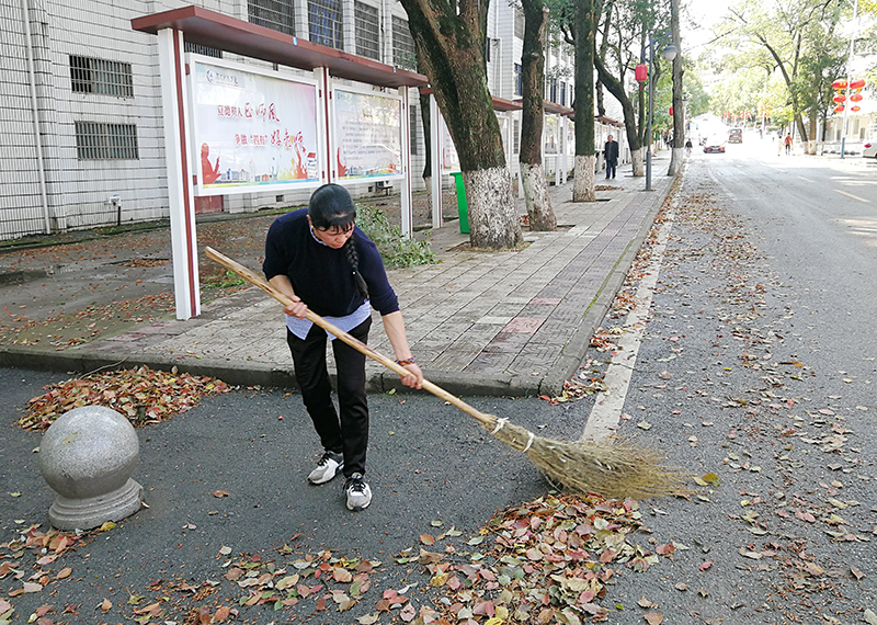 保洁人员清扫校园道路