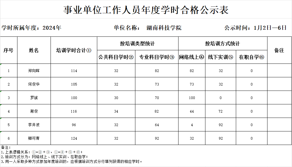 根据《关于做好bat365官网2024年度事业单位工作人员培训工作的通知》要求,经个人填报,部门审核,现将我处2024年事业单位培训学时情况予以公示,公示时间为2025年1月2日—6日,如有异议,请在公示期内向725办公室反馈。