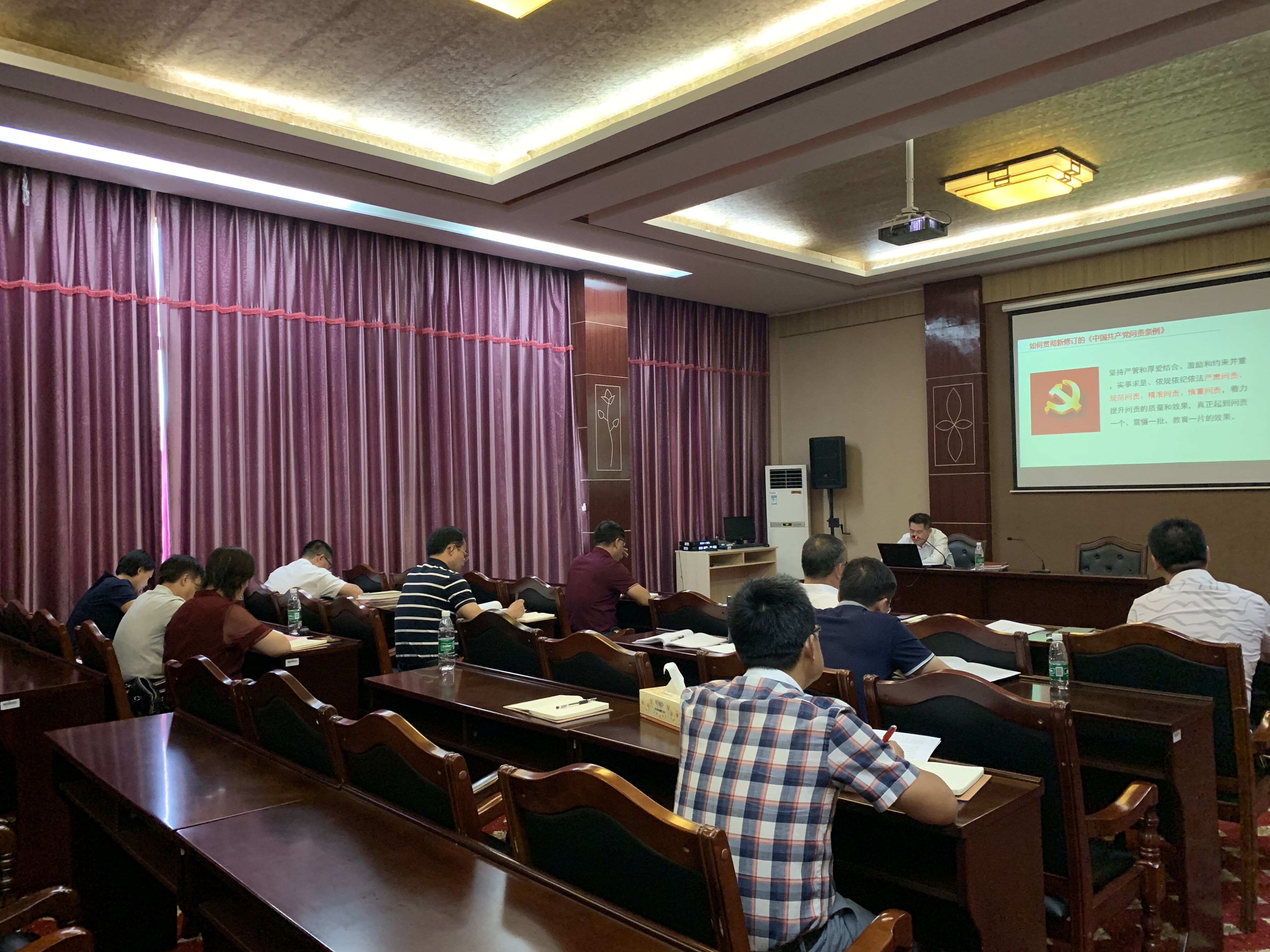 9月23日,机关第三党支部在行政楼807会议室内开展“不忘初心 牢记使命”主题教育集中学习,支部书记黄栋主持,支部全体成员参加。支部副处级以上干部领学了《习近平关于“不忘初心、牢记使命”重要论述选编》,支部委员领学了《人民日报评论员:坚定理想信念 牢记初心使命——论学习贯彻习近平总书记在中青年干部培训班上重要讲话》等理论文章,支部成员一同观看了《习近平在中央党校(国家行政学院)中青年干部培训班开班式上的讲话》等重要讲话视频以及《初心•使命》《铁一般的信仰》等红色教育片,编印了《“不忘初心 牢记使命”主题教育集中理论学习资料汇编》。集中学习为期一天,紧扣主题,内容丰富,形式多样,各个党员态度端正,积极参与,收到了良好的效果。