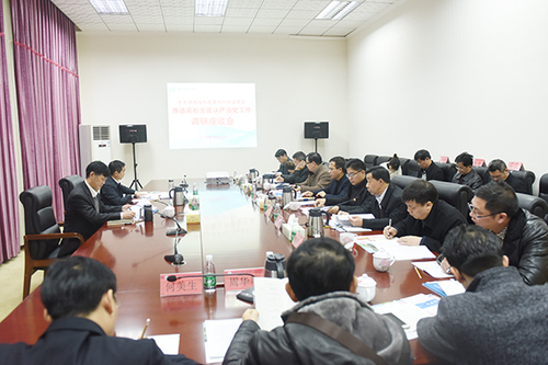 本网讯 3月20日上午,中共湖南省纪委第四纪检监察室推进高校全面从严治党工作调研座谈会在bat365官网召开。省纪委第四纪检监察室主任张双春,bat365官网党委书记陈弘、纪委书记彭立威以及衡阳和永州11所高校(含高职)纪委书记、部分纪委副书记等参加了会议。会议由张双春主持。