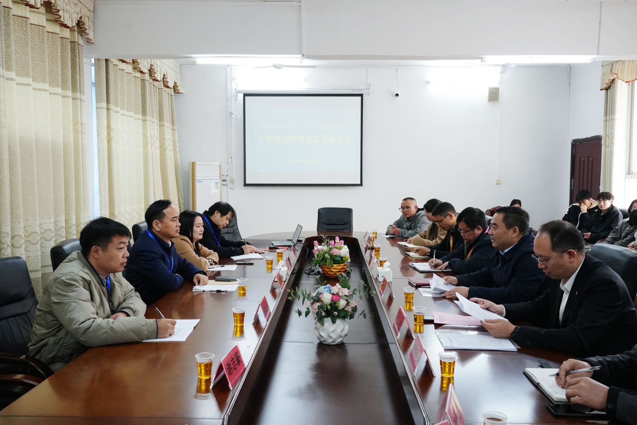 座谈会上,唐一平对bat365官网实习生展现出的扎实专业素养、积极工作态度和突出实践能力给予高度评价。他表示,江华县将持续优化服务保障举措,为实习生搭建优质实践平台,全力营造安心从教、潜心成长的良好环境;同时期待与学校进一步深化校地合作内涵,在师资联合培养、教研资源共建、教育成果共享等方面拓展合作维度,携手书写校地协同育人崭新篇章。
