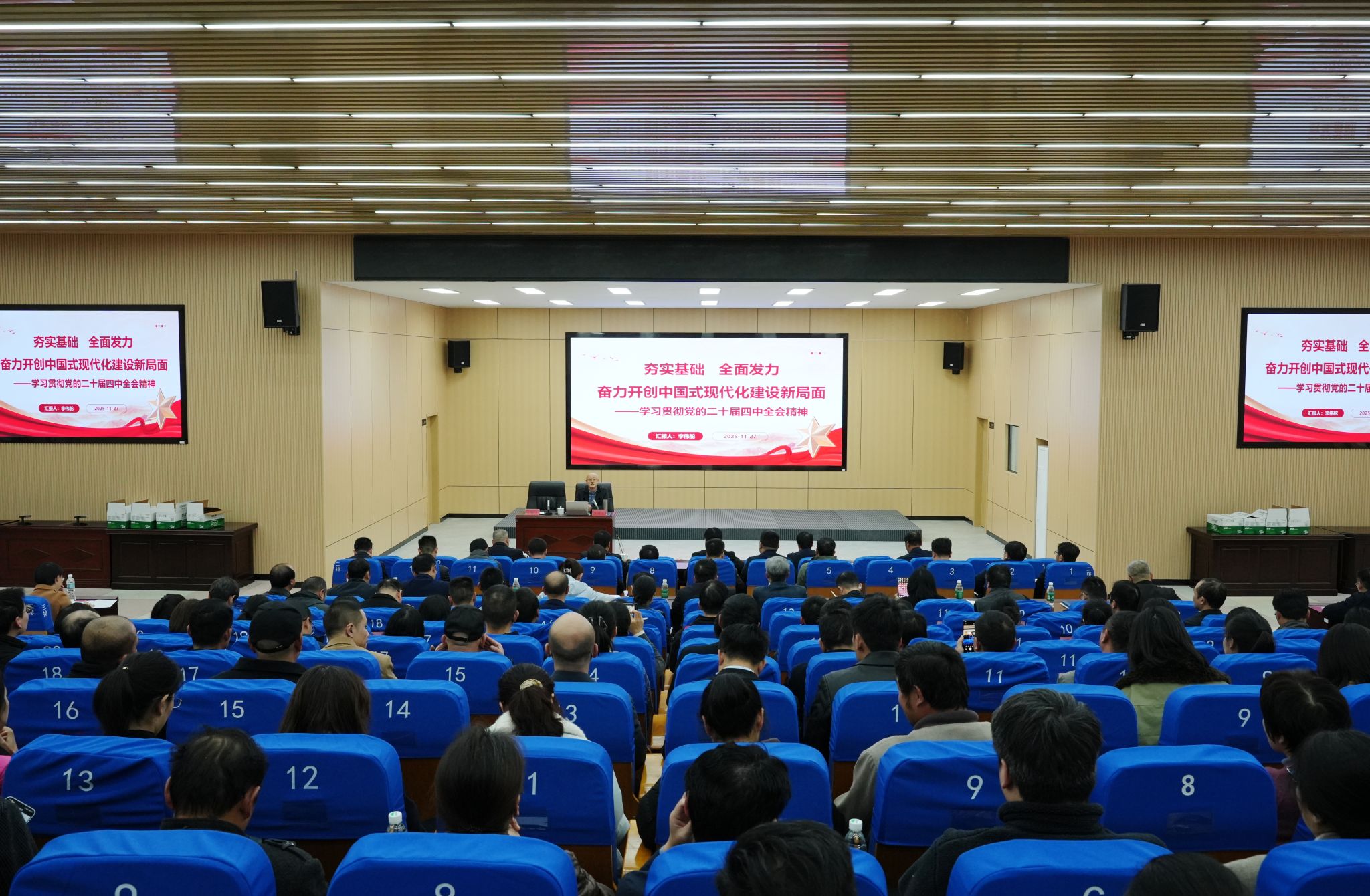 报告会上,李伟舵以《夯实基础,全面发力,奋力开创中国式现代化建设新局面》为题,对党的二十届四中全会精神进行了系统宣讲和深入阐释。他紧扣全会相关部署,从四个方面展开解读:一是准确把握“十五五”时期我国发展所处的历史方位,明确阶段特征;二是深刻领会“十五五”时期经济社会发展的指导方针,明确前进方向;三是全面贯彻“十五五”时期的战略任务和重大举措,厘清实践路径;四是扎实推动二十届四中全会精神落地生根的实践要求,强化落实抓手。报告紧密结合湖南省贯彻落实的部署要求,内容条理清晰、逻辑严谨,为全校党员干部深刻领会全会核心要义、科学谋划学校发展新篇章提供了有力指导。