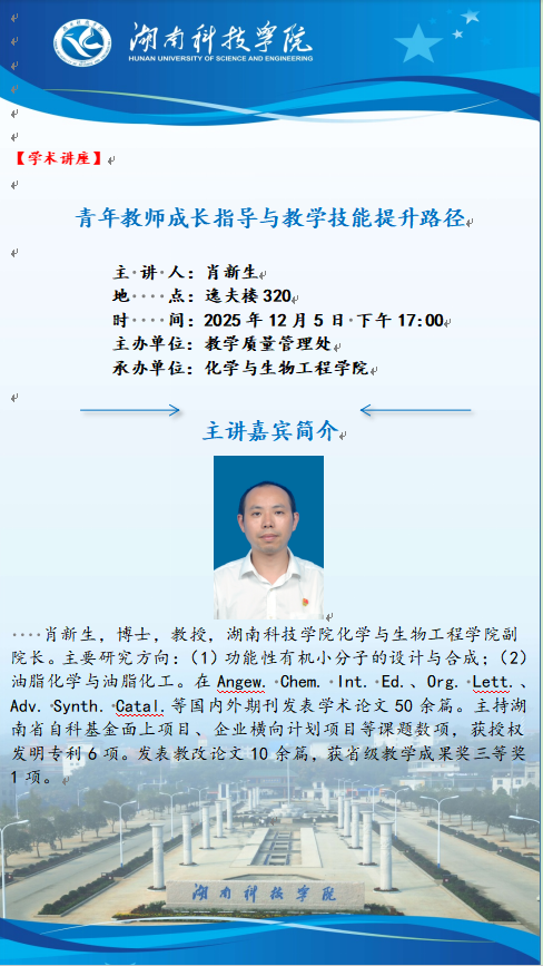 本期活动特邀请化学与生物工程学院闫荣玲老师和肖新生老师,和大家一同探索教学竞赛如何驱动教学新范式,从备赛方向、参赛技巧,分享获奖经验,提升教师备赛参赛的针对性与实效性,拓展教学改革的新视野。