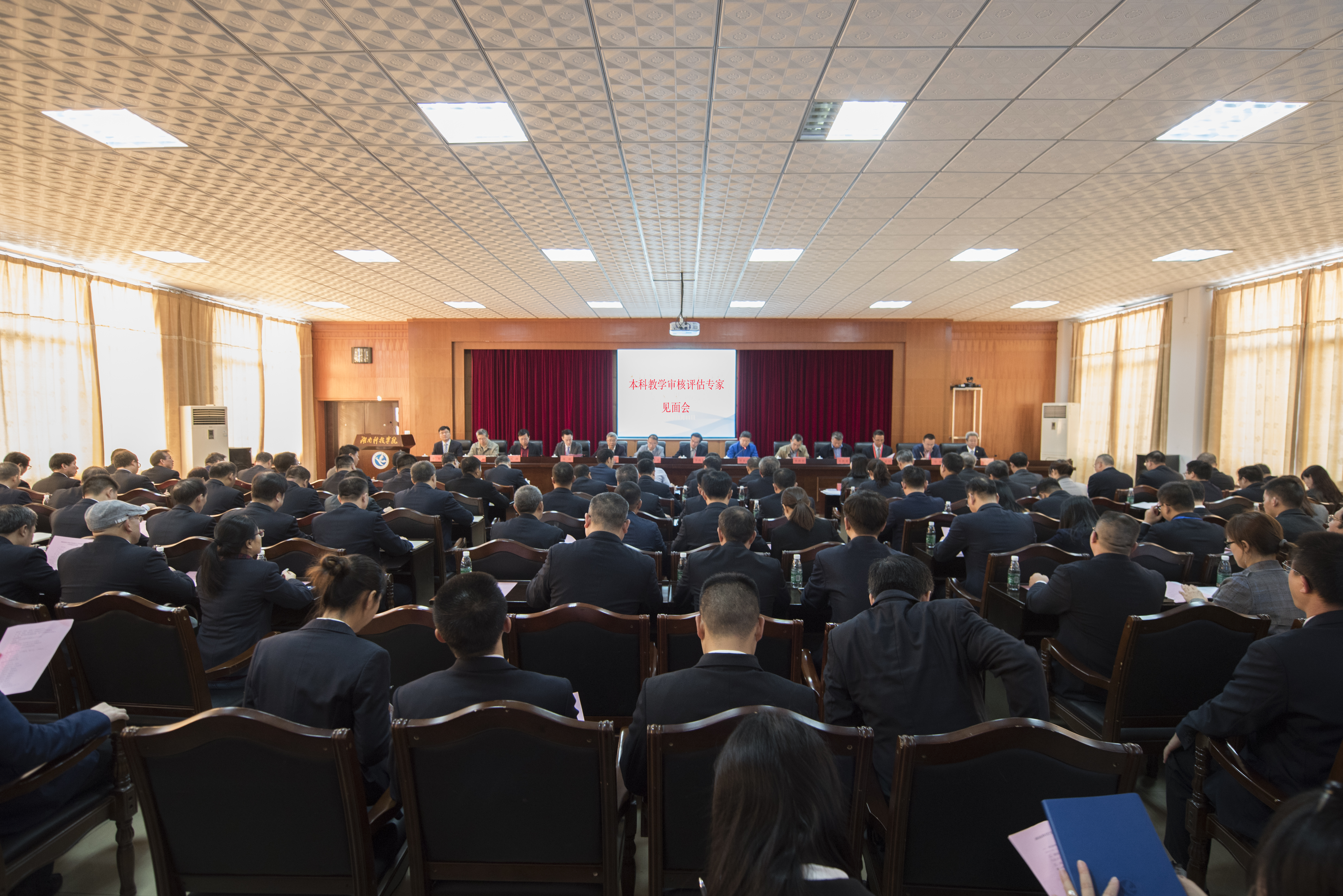 11月11日,学校召开本科教学工作审核评估专家见面会。以华中师范大学原副校长李向农教授为组长的专家组全体成员,省教育厅党组成员、主任督学、副厅长、工委委员唐亚武,省教育厅高教处处长曾力勤,副处长王荣,校党委书记曾宝成,党委副书记、校长李钢,校领导唐艳明、宋宏福、彭立威、郑山明、李常健、吴小林、程智开,学校全体副处级以上干部参加。