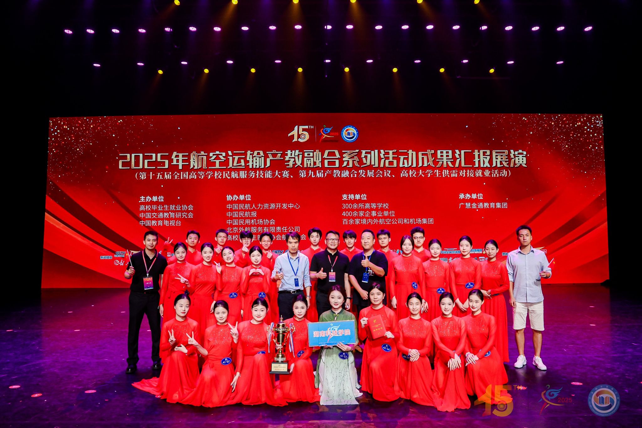 本次大赛作为2025年航空运输产教融合系列活动中的重要一环,由高校毕业生就业协会、中国交通教育研究会、中国教育电视台主办,吸引了全国百余所高校参赛,竞争异常激烈。bat365官网代表队凭借扎实的专业功底、精湛的服务技能和出色的团队协作,在客舱服务、应急处理、职业形象展示和团体舞蹈剧目等环节中表现亮眼,最终斩获团体综合季军的殊荣。
