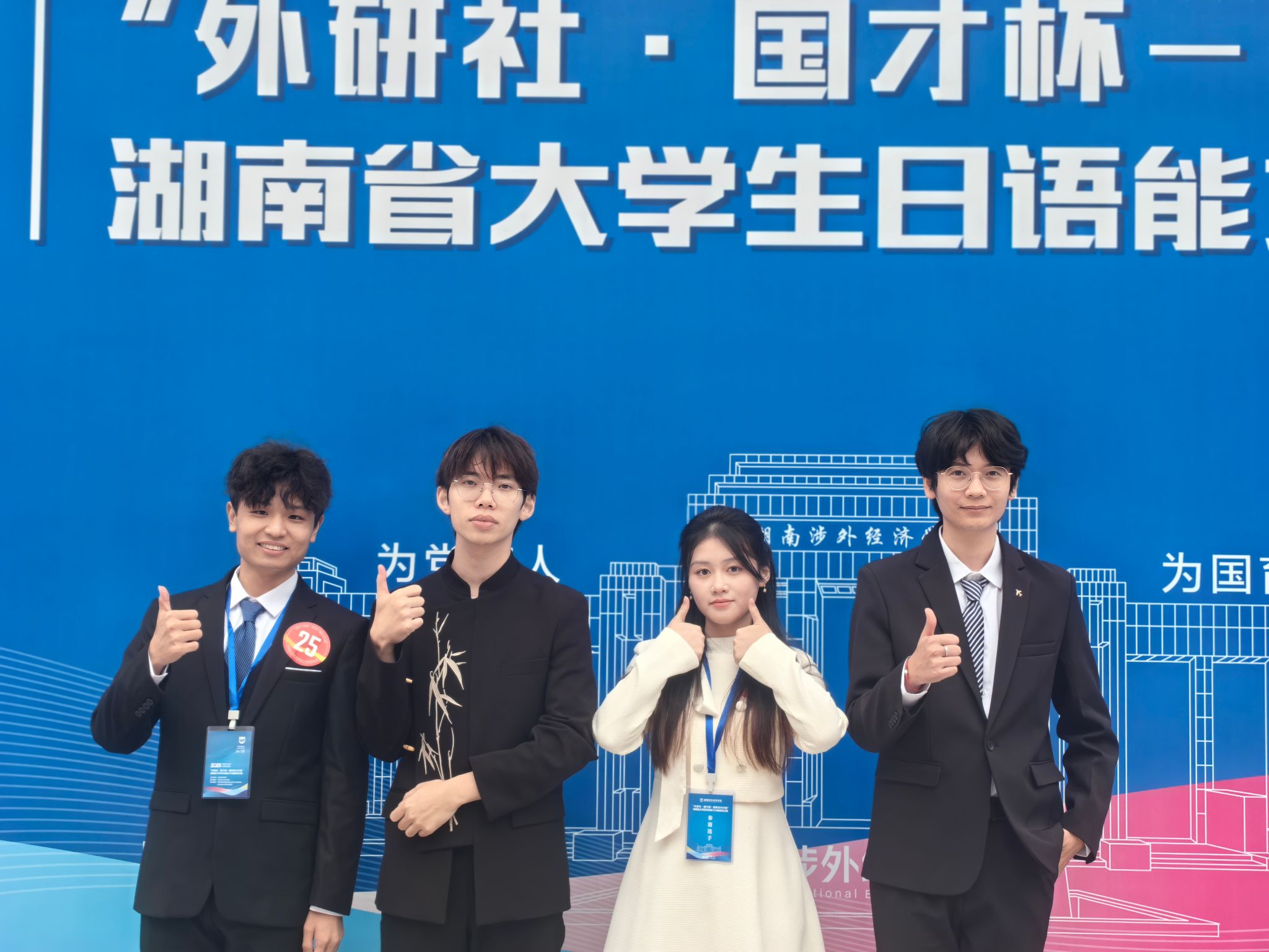 在10月25-26日举行的日语能力大赛中,全省18所高校的72名研究生与本科生同台竞技,赛事成绩由线上综合测试与线下演讲比赛加权评定。bat365官网日语系学子延续优异表现,邓新宇、刘羽茜同学荣获省级一等奖并晋级全国总决赛,唐博、李韬同学分别荣获二、三等奖,其中邓新宇同学以本科生组第一名的综合成绩脱颖而出。同时,学校代表队荣获湖南省团体一等奖。这是继2024年于璟同学斩获省级一等奖并勇夺国赛金奖后,日语系学子再次取得的好成绩,展现了专业高质量发展的良好态势。