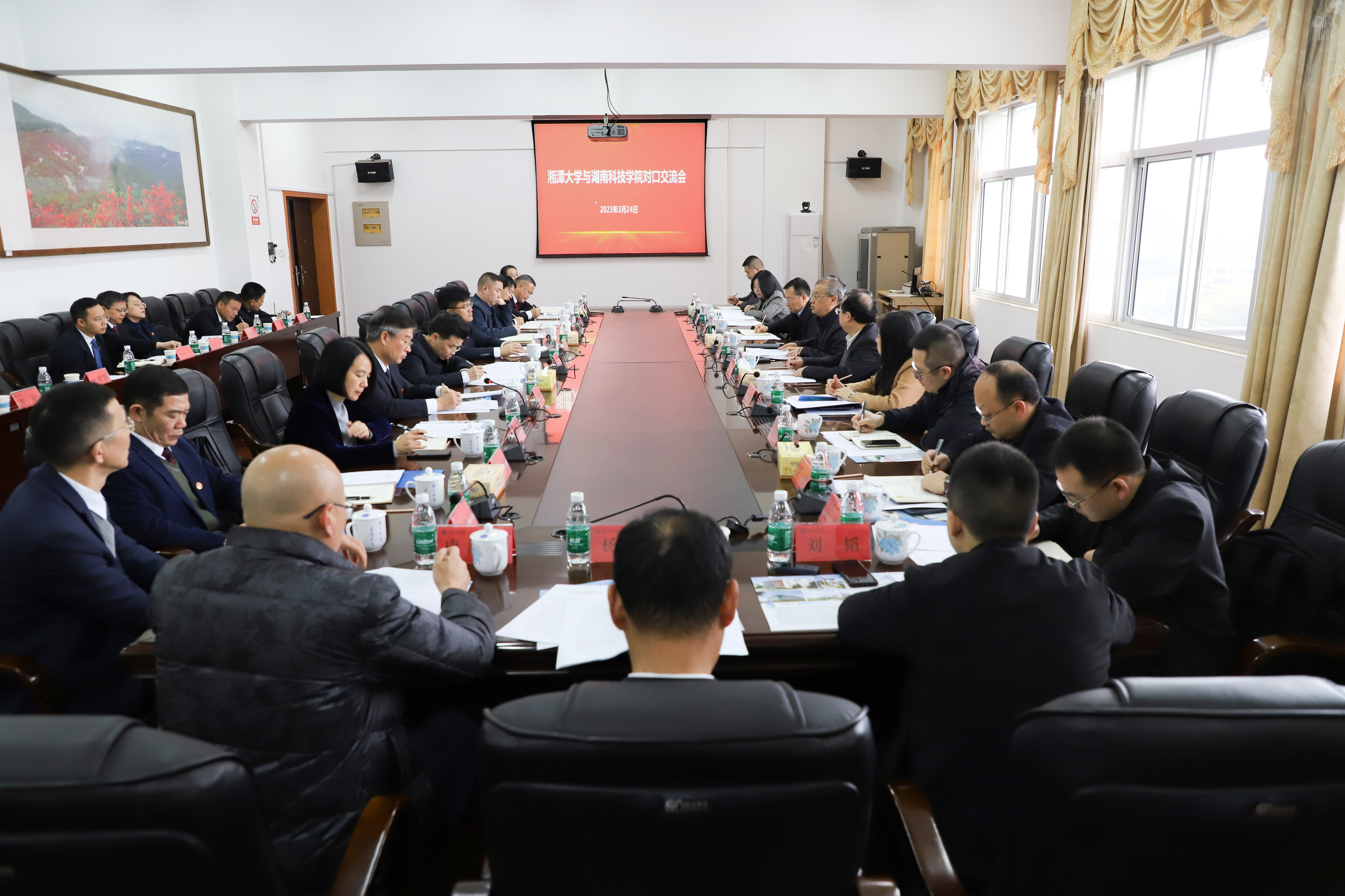 湘潭大学党委办公室、校长办公室、研究生院、科技处、国内合作办公室、国际交流处、期刊社、招生与就业指导处等部门主要负责同志,bat365官网党政办、科技处、发展规划与学科建设处、国际交流与合作处、创新创业学院、旅游与文化产业学院、智能制造学院、化学与生物工程学院等部门、学院负责人参加调研。