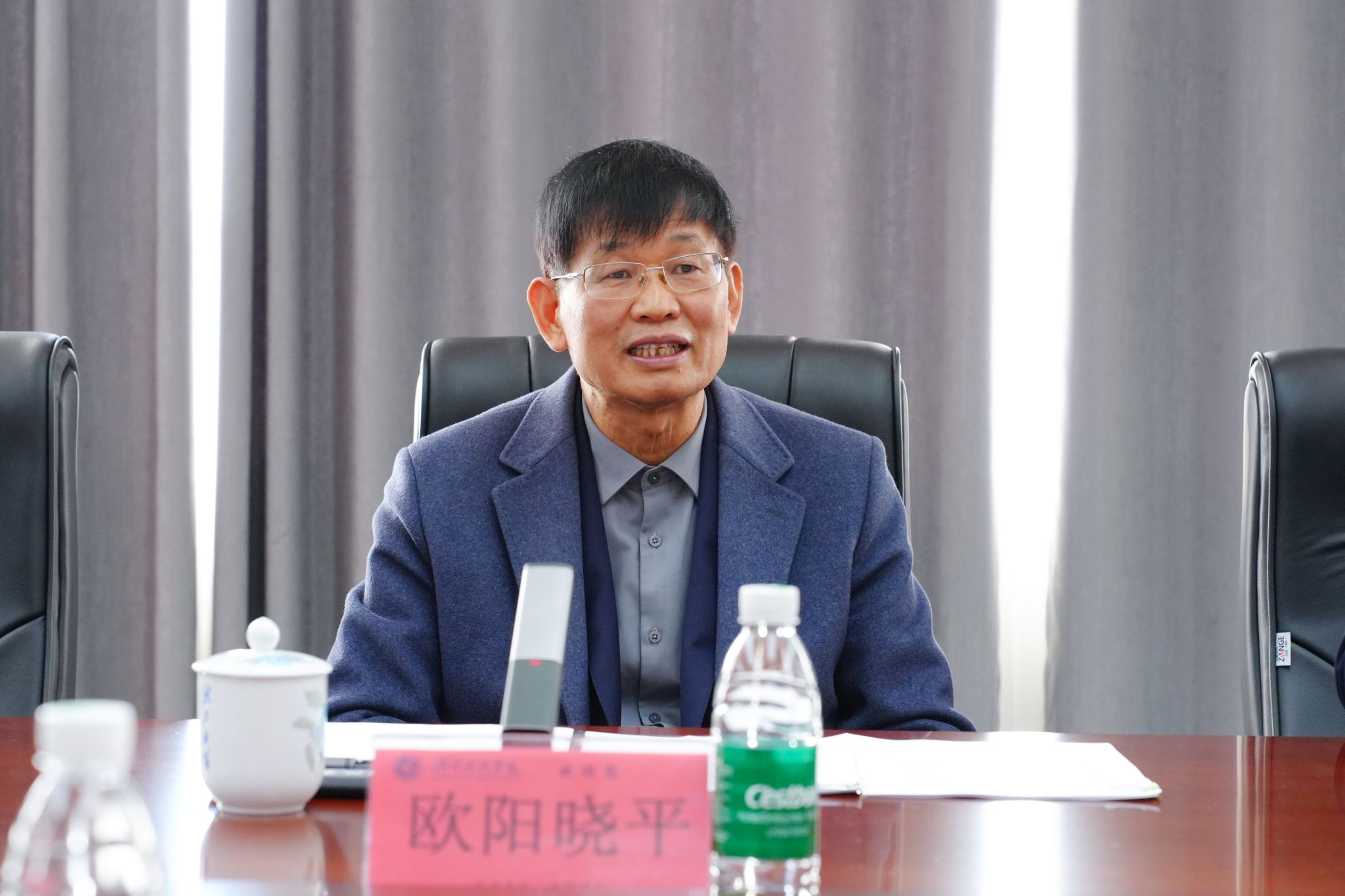 李钢对欧阳晓平院士回访母校表示最热烈的欢迎,向他长期以来对母校的关心和支持表示最诚挚的感谢,并介绍了学校“十四五”期间的发展情况以及学校“十五五”规划、2041年建校100周年远景目标规划。他希望欧阳晓平院士一如既往地关心支持学校的硕士学位授权点建设、科研项目申报、学科发展、人才团队引进等重点工作,加快推进学校各项事业高质量发展。