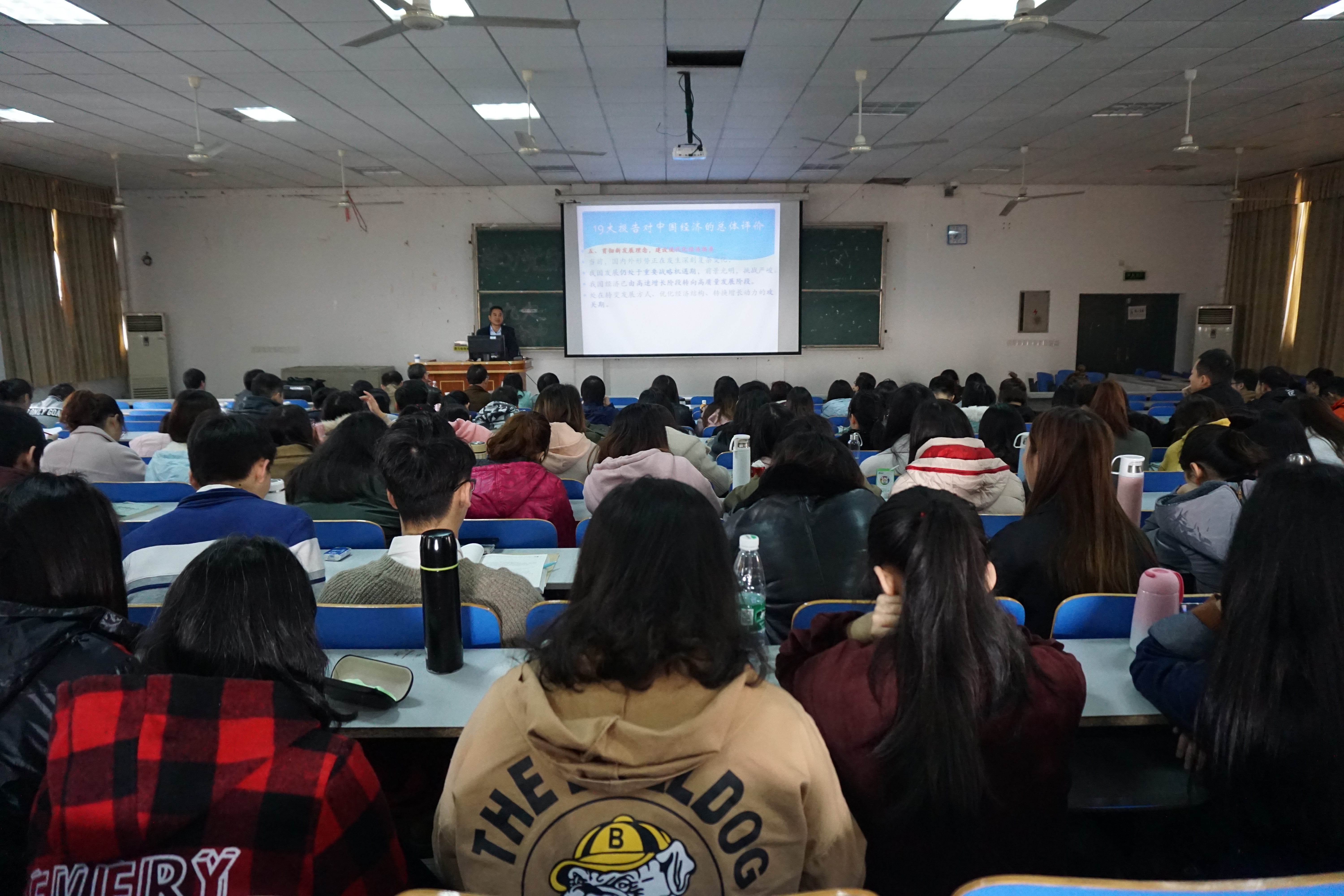 本网讯 11月27日上午,经济与管理学院邀请中国社会科学院研究员、中国社会科学杂志社二部主任林跃勤博士来校做题为“十九大后中国经济创新转型发展目标与前景”的讲座。湘潭大学副教授朱健博士、土木与环境工程学院党总支书记张俭民以及300余名国贸、金融专业学生聆听了讲座,该院院长李清泉主持讲座。