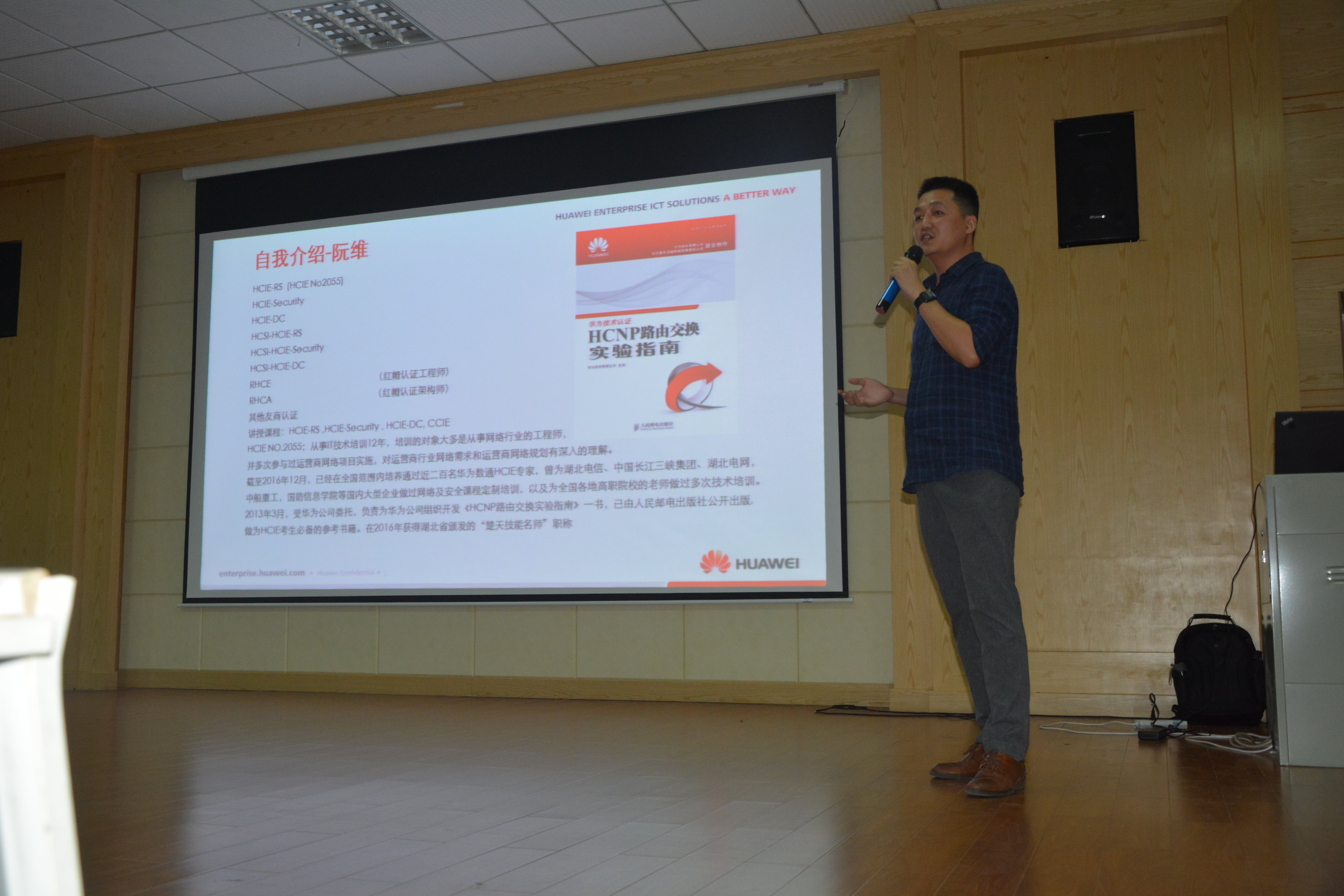 讲座,阮维首先向大家介绍华为ICT网络融合技术在国内发展的主要趋势,以及目前面临的主要技术瓶颈。随后,阮维深入浅出地为新生介绍了当前ICT网络融合所需要的相关技术,提醒同学们在学习相关课程中需要注意的一些问题,以及如何将相关技术进行运用。阮维还与大家互动,解答大家提出问题,分享自己学习相关技术经验。