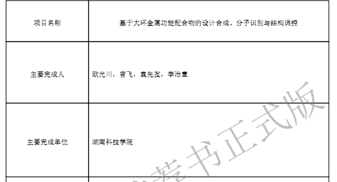 2、2018年度湖南省科学技术奖拟推荐项目: