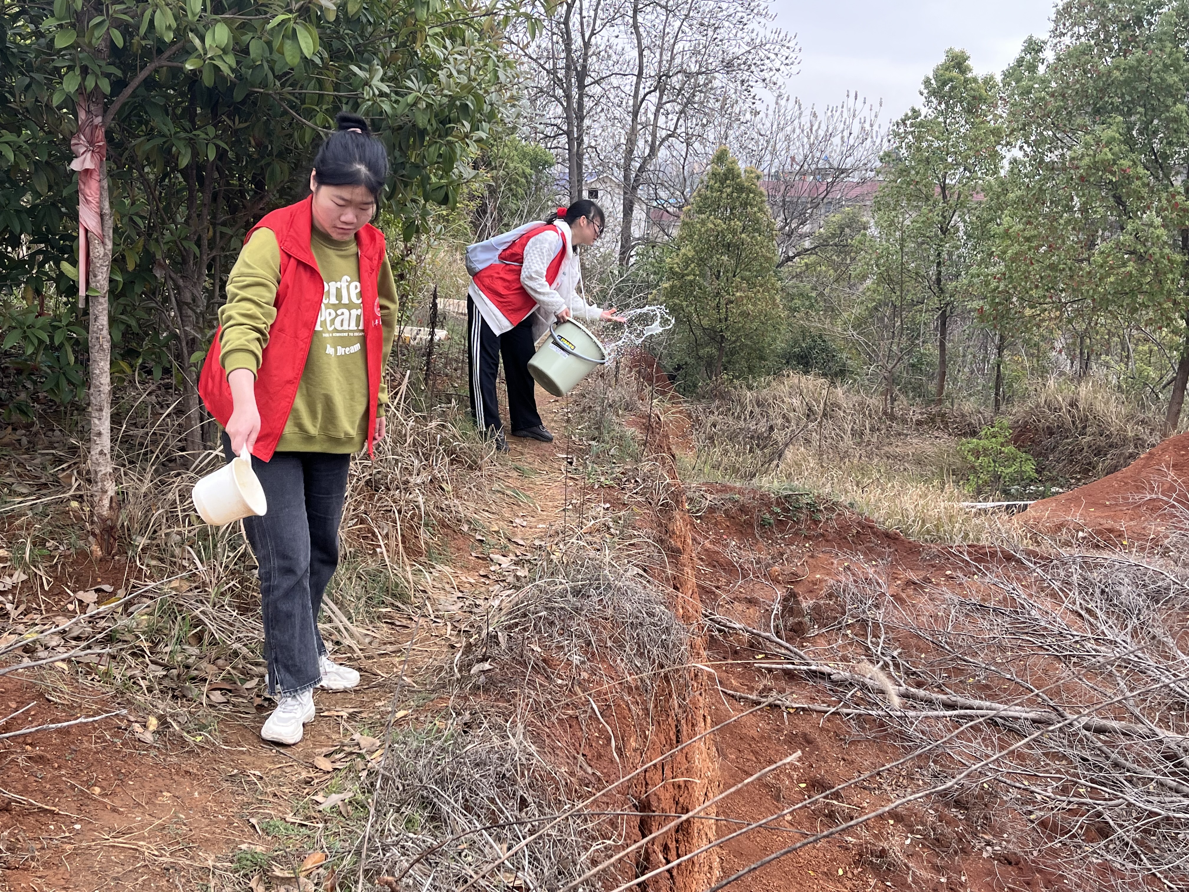 (我院志愿者为花种浇水)