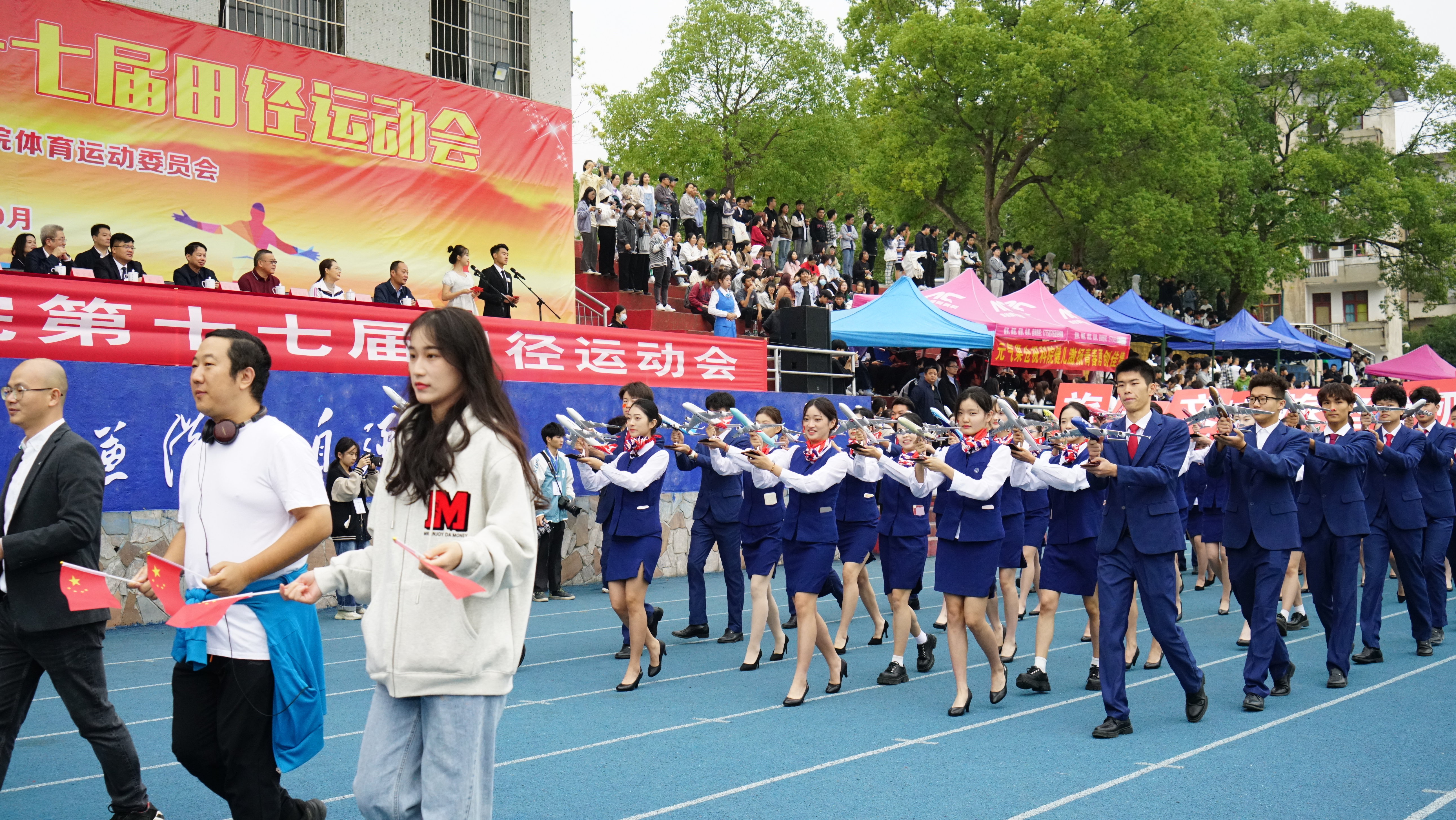 开幕式上,我院作为首个学院方阵入场,手持飞机模型的同学们成了一道靓丽的风景线。方阵高喊着“旅文旅文,拼搏坚韧;踔厉奋发,勇毅前行”口号,英姿飒爽走过主席台,展现了学院良好的精神风貌。