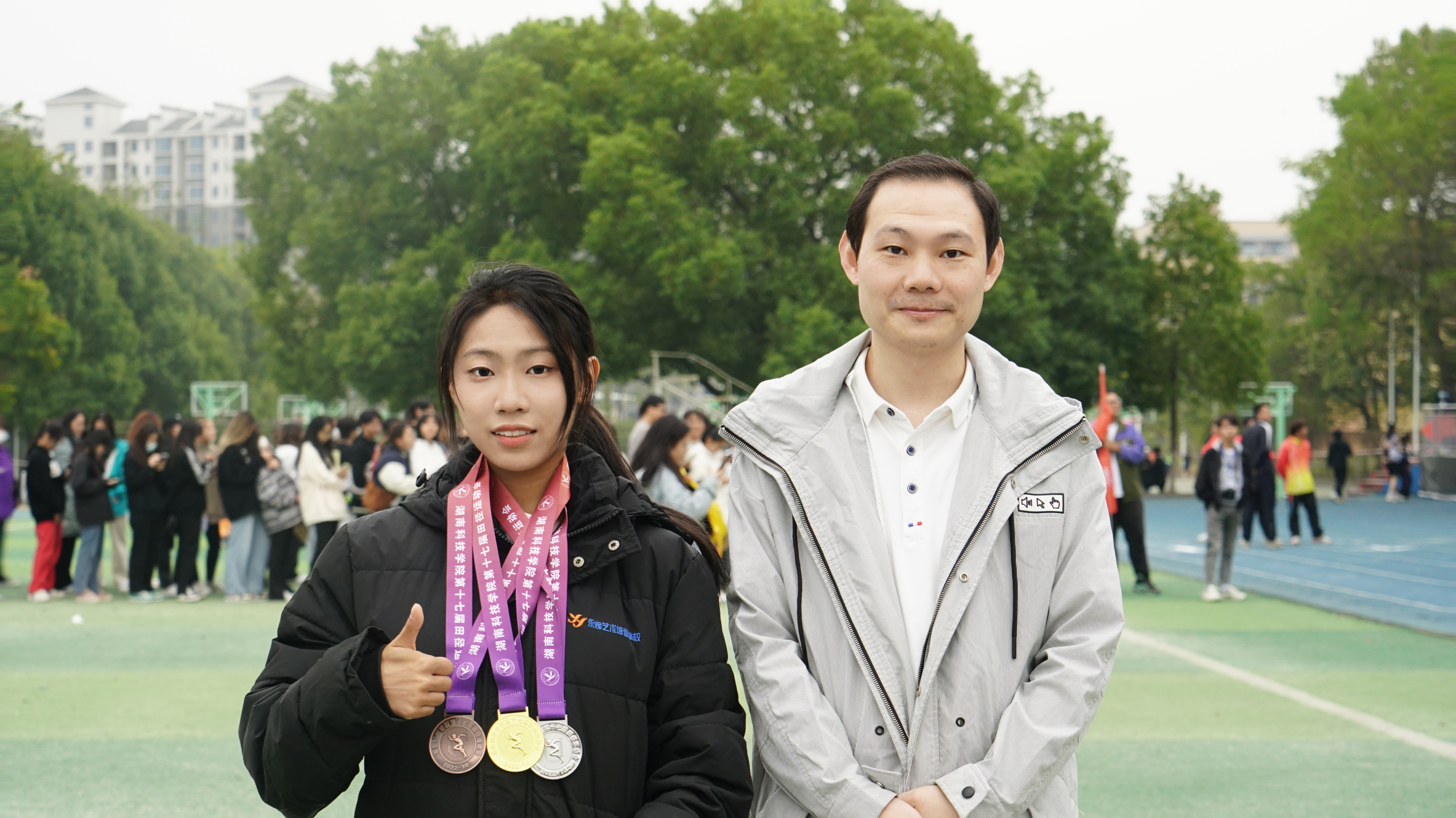 “感谢学院的大力支持,感谢教练的悉心指导,感谢同学们的陪伴,因为有了大家的关心,我才能在这次比赛中突破自我,获得金牌。”斩获女子甲组100米金牌的2022级谭朱茜同学在赛后采访中说道。