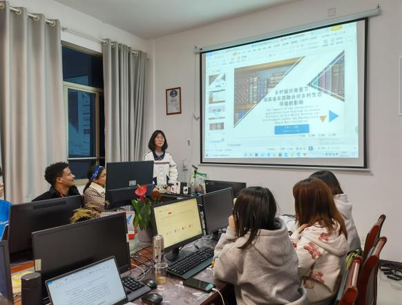 本网讯(通讯员 李璇)4月18日晚,我院潇湘文旅发展与乡村振兴科研兴趣小组在弘毅楼602举办了第三期研讨会,本次研讨会采用全英文的方式,副院长蔡保忠博士主持,梅西博士出席。