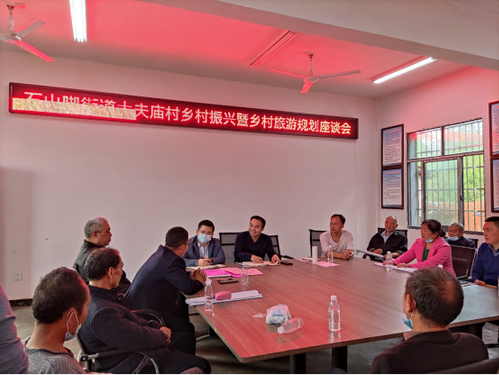 25日下午,黄院长一行来到石山脚街道大夫庙村进行调研并参加乡村振兴暨乡村旅游规划座谈会。会上,永州市文旅广体局派驻大夫庙村乡村振兴工作队何剑队长首先介绍了大夫庙村乡村振兴与旅游发展的基本情况;对黄渊基院长参与策划农村味道项目并推动实施,带动大夫庙村发展表示感谢;并就大夫庙村未来开展乡村旅游工作提出了交流意见。大夫庙村村支部沈勇军书记对相关情况进行了补充。接着,黄院长一行与与会的大夫庙村党员、群众代表进行了充分的交流,并从院村合作及乡村旅游发展的目标定位、功能分区、乡村振兴、一二三产业融合等方面发表了自己的看法。会后,黄院长一行分别到村内各主要区块进行了实地调研。
