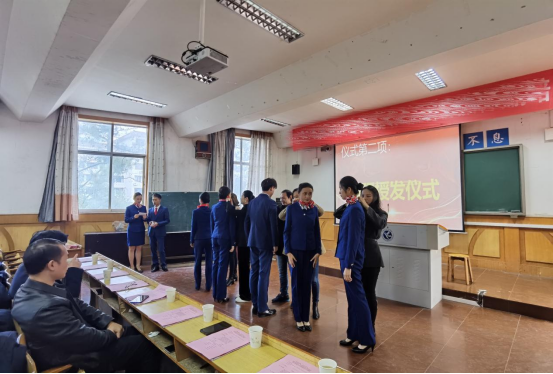 本网讯 11月9日上午,我院航空服务艺术与管理专业21级新生在博雅楼西二教室举行制服授发仪式。