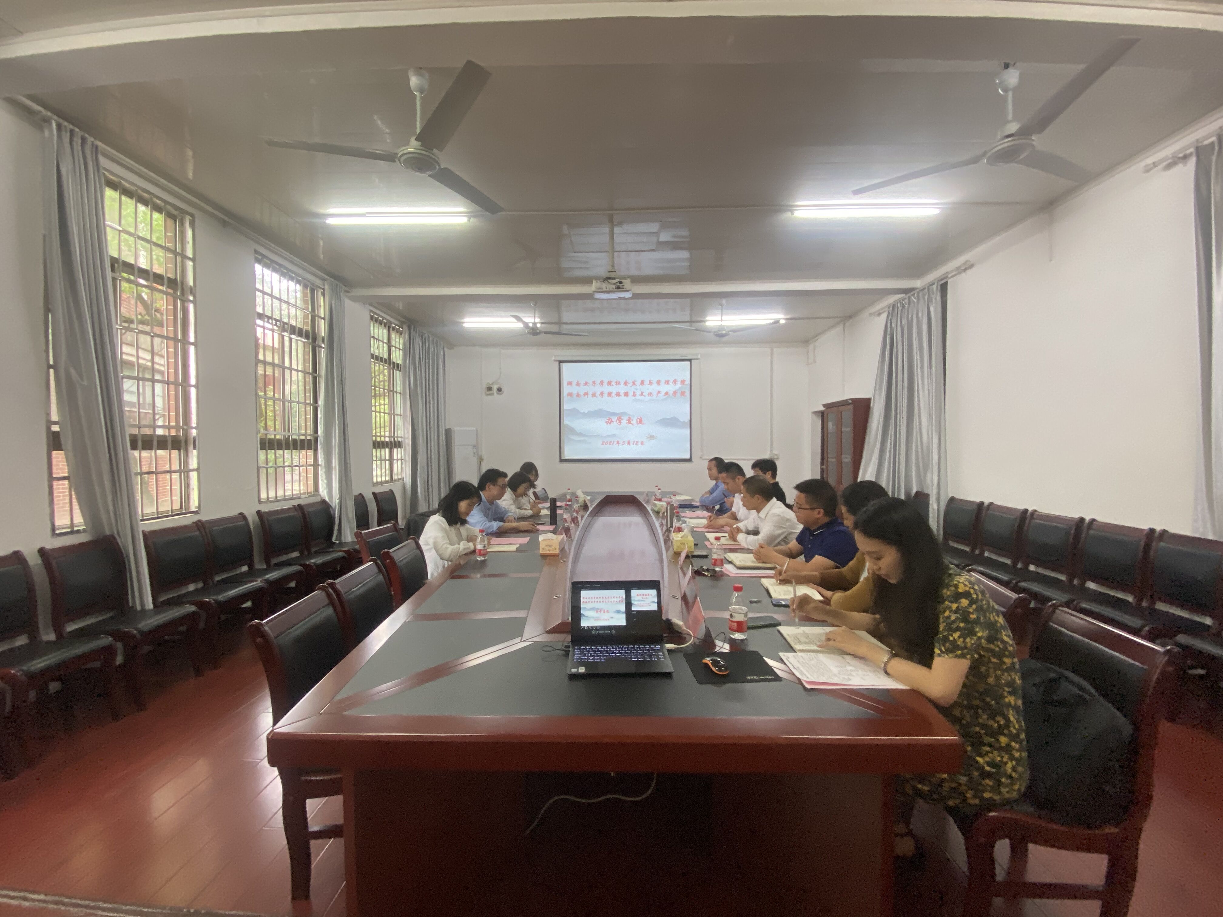 本网讯 5月12日上午,湖南女子学院社会发展与管理学院党务副院长邵汉清一行前来我院交流办学经验。学院党总支书记杨再喜、院长黄渊基等院领导、系主任以及教师代表参加了交流会。