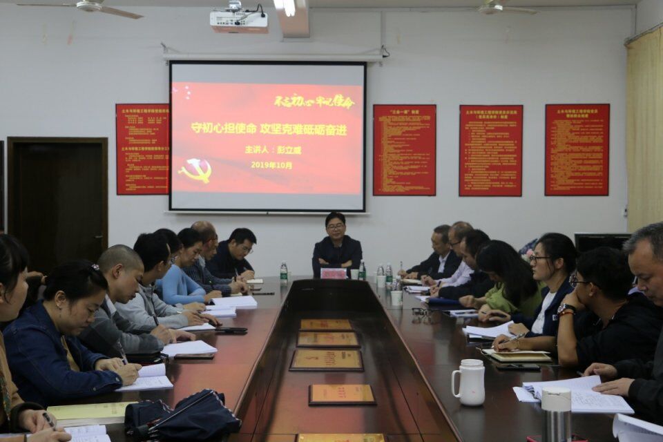 彭立威以“守初心担使命,攻坚克难砥砺前行”为题,围绕坚定理想信念,准确把握认同初心和使命、党的初心和使命与教育的初心内在关联辩证统一、高校要做践行初心和使命的表率、教师党员要不断自我完善,办人民满意的教育等四个方面进行展开。