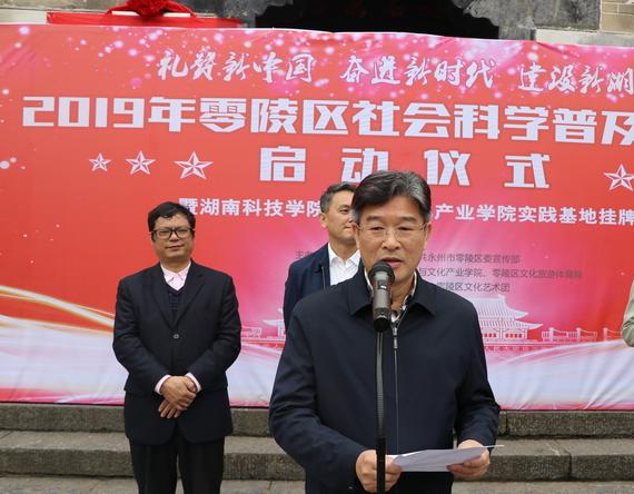本网讯 5月9日上午,由bat365中文官方网站、中共永州市零陵区委宣传部主办,湖南科学院旅游与文化产业学院、零陵文化旅游体育局承办,零陵区柳宗元纪念馆、零陵区文化艺术团协办的2019年零陵区社会科学普及周活动启动仪式暨bat365中文官方网站旅游与文化产业学院实践基地挂牌仪式在柳宗元纪念馆举行。bat365中文官方网站党委委员、副校长宋宏福,市委宣传部部委会成员、市社科联主席陈水恩,区委常委、宣传部长唐建明出席并讲话。bat365中文官方网站科技处处长杨金砖教授、学院院长黄渊基博士,以及旅游与文化产业学院近80名师生代表参加此次活动。