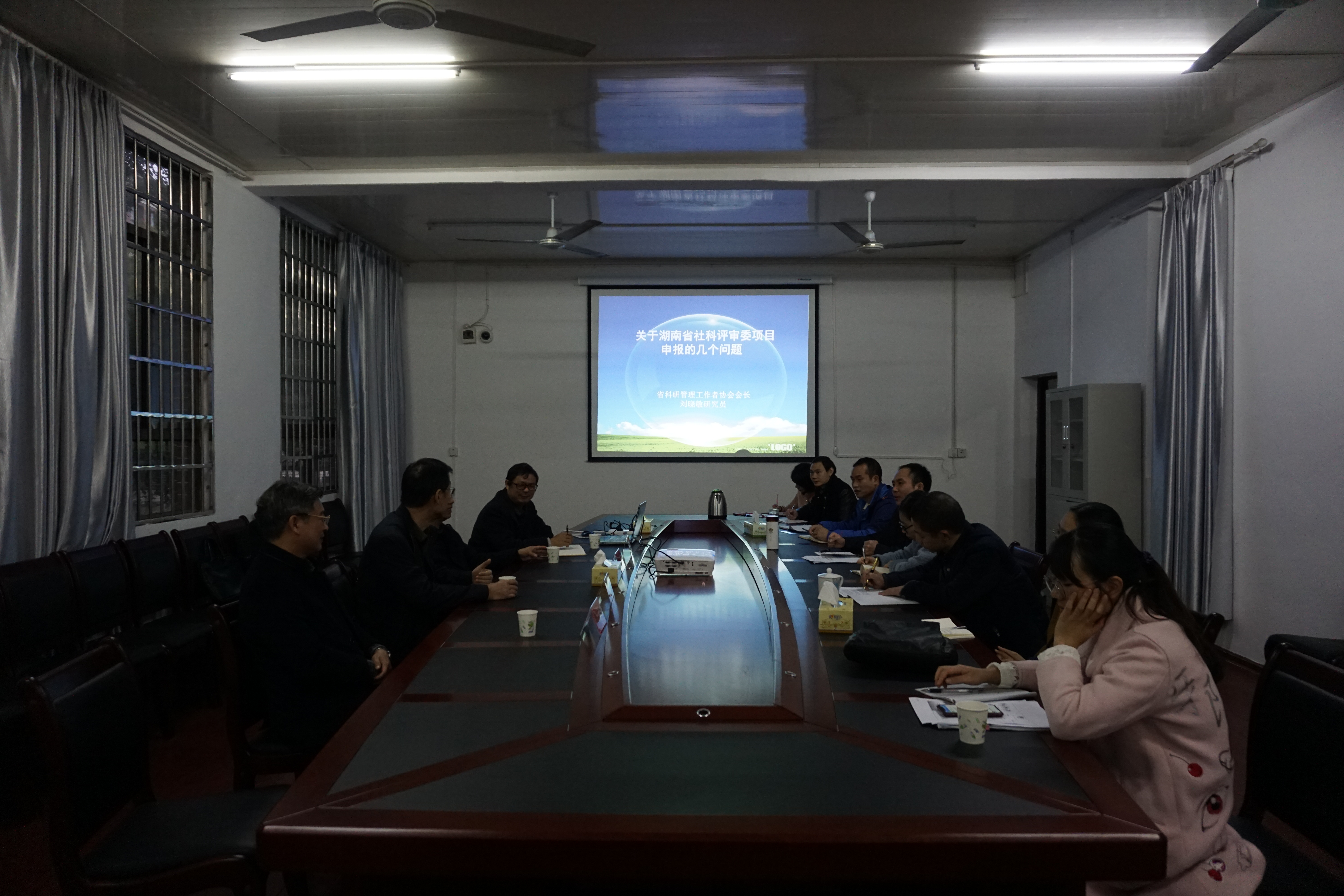 本网讯  1121日下午,湖南省社科联原巡视员、湖南省科研管理工作者协会会长刘晓敏莅临学院调研指导并做“湖南省社科评审项目申报”主题辅导报告,校党委书记陈弘、副校长宋宏福、科技处处长杨金砖及学院全体教职工参加,会议由杨金砖主持。