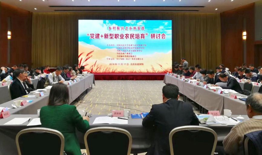 本网讯   11月17日,由中国社会科学院农村发展研究所、中国人民大学农业与农村发展学院、全国工商联人才交流服务中心等单位主办的“乡村振兴之永州实践——‘党建+新型职业农民培育’研讨会“和“2018全国新型职业农民培育发展高峰论坛“在北京召开。会议以助推脱贫攻坚、实现乡村振兴为主题,就“党建+新型职业农民培育”永州地方样本进行总结研讨。与会领导、专家学者认为,永州“党建+新型职业农民培育”模式在全国可借鉴、可复制、可推广。