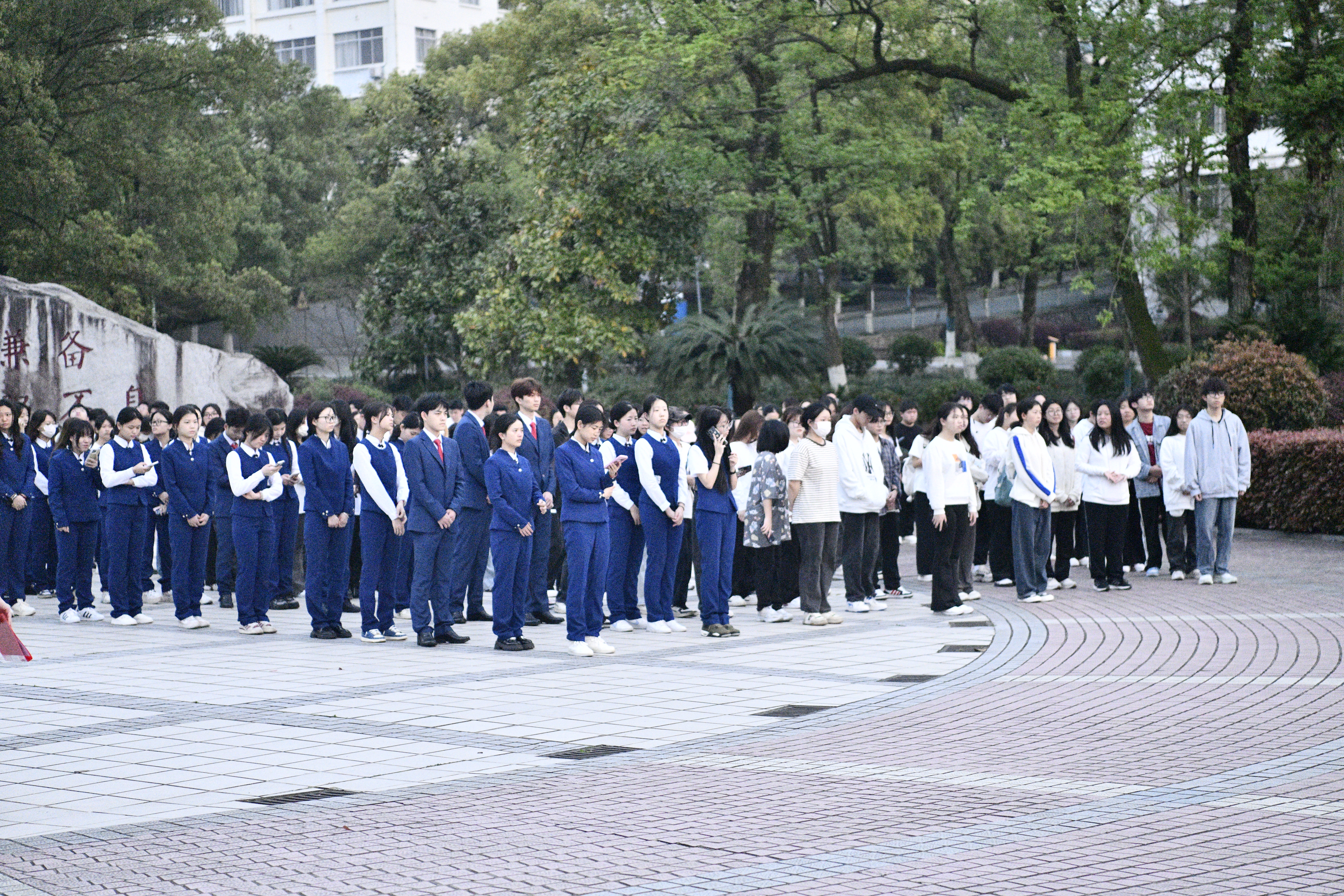 清晨的微风中,国旗护卫队的成员们迈着坚定的步伐,护送着五星红旗走向升旗台。伴随着雄壮的国歌声,鲜艳的五星红旗冉冉升起,迎风飘扬。全院师生整齐列队,肃立注目,共同见证这一庄严时刻。