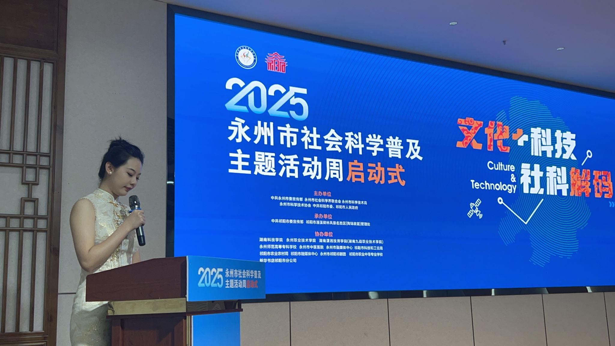 本网讯(通讯员:郭佳豪)5月30日上午,2025年永州市社会科学普及主题活动周启动仪式在祁阳市摩崖石刻数字博物馆隆重举行。本次活动由永州市委宣传部、市社科联等多家单位联合主办,以"文化+科技·社科解码"为主题,旨在推动社会科学普及工作创新发展。