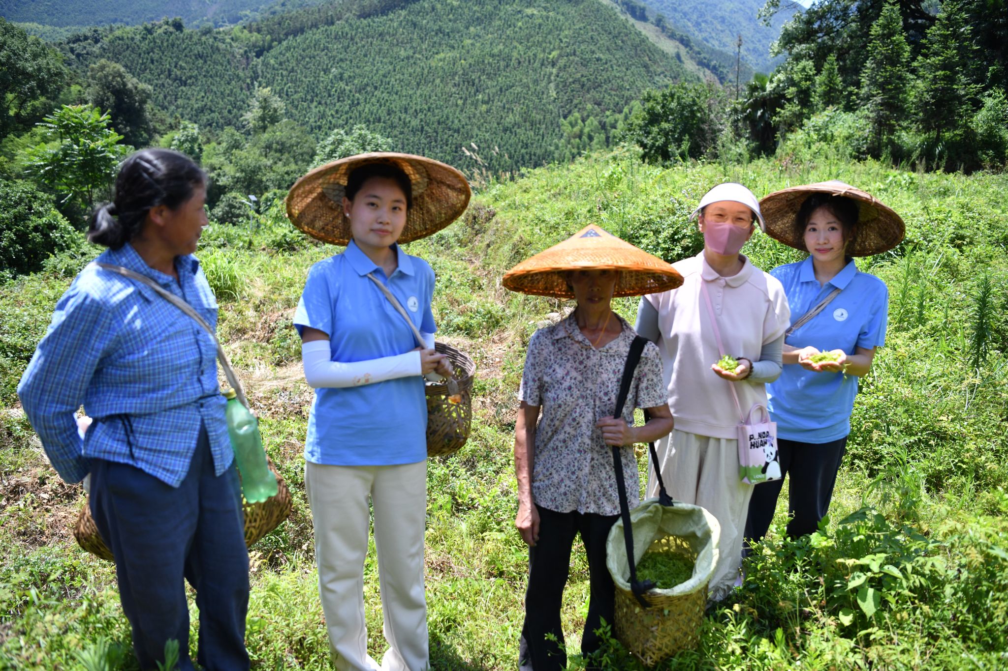 在镇党委书记的引导下,志愿者们深入藤茶种植基地,在茶农指导下体验采摘过程,系统了解制茶工艺流程。在专业教师的带领下为乡亲们讲解藤茶的种植、修剪、施肥、病虫害防治等技术要点,配合当地开展藤茶新产品研发,制作藤茶产品宣传视频,提升藤茶的文化价值和品牌影响力。志愿者们走进当地历史悠久的古村落,开展文化遗产保护知识普及宣讲活动,为古村落保护建言献策。创新开展“15秒爱上五里牌”文创实践活动,围绕该镇的文旅资源和滑翔伞产业,精心创作文旅短视频,展示五里牌镇的风土人情和独特魅力。期间,志愿者们还开展了“乡村安全双护航”宣传活动,通过走村入户、张贴海报、发放手册等形式,普及金融安全知识和防溺水警示教育。
