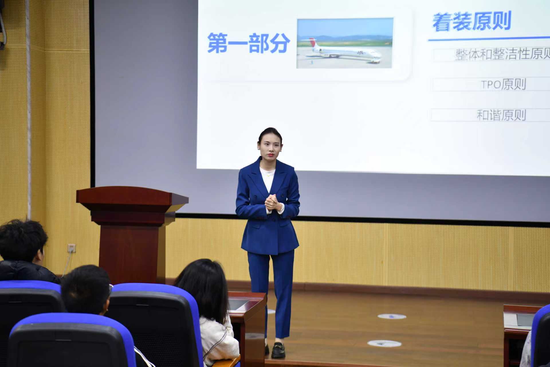 在主讲环节,龙俊君老师聚焦“仪容仪表”主题,从“整洁得体、符合场景、彰显气质”三个维度展开深入讲解。她结合课堂学习、学术交流、校园活动等具体场景,通过大量实例生动阐释了不同场合的着装规范。“同一身衣着,在教室恰如其分,在正式场合就可能失礼。”龙老师深入浅出的讲解,让在场学子频频点头。