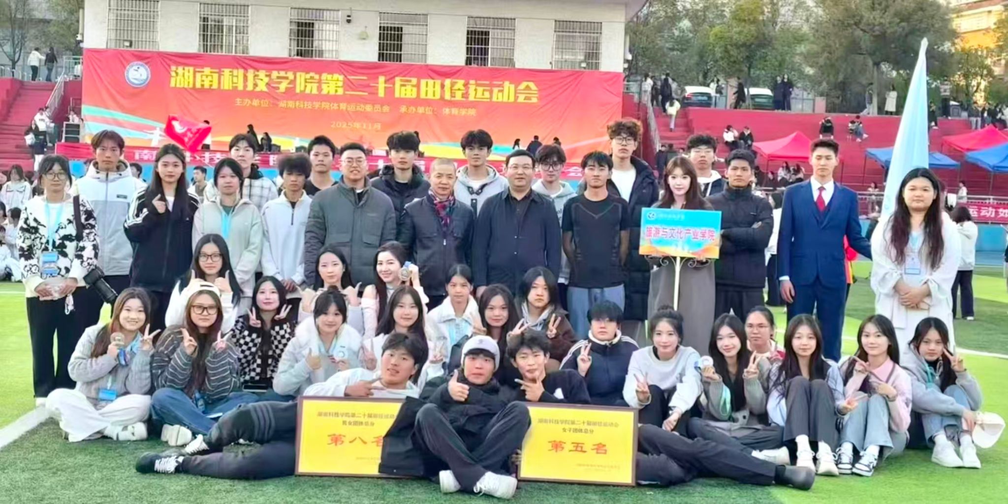 本网讯(通讯员:刘雅欣)11月20至21日,bat365中文官方网站第二十届田径运动会在学校田径场盛大举行。在为期两天的赛事中,旅文院的运动健儿们怀揣热血与信念,在赛场上奋勇争先、全力以赴,最终凭借亮眼表现斩获女子第五名、男女团体总分第八名的优异成绩,用拼搏诠释青春底色。