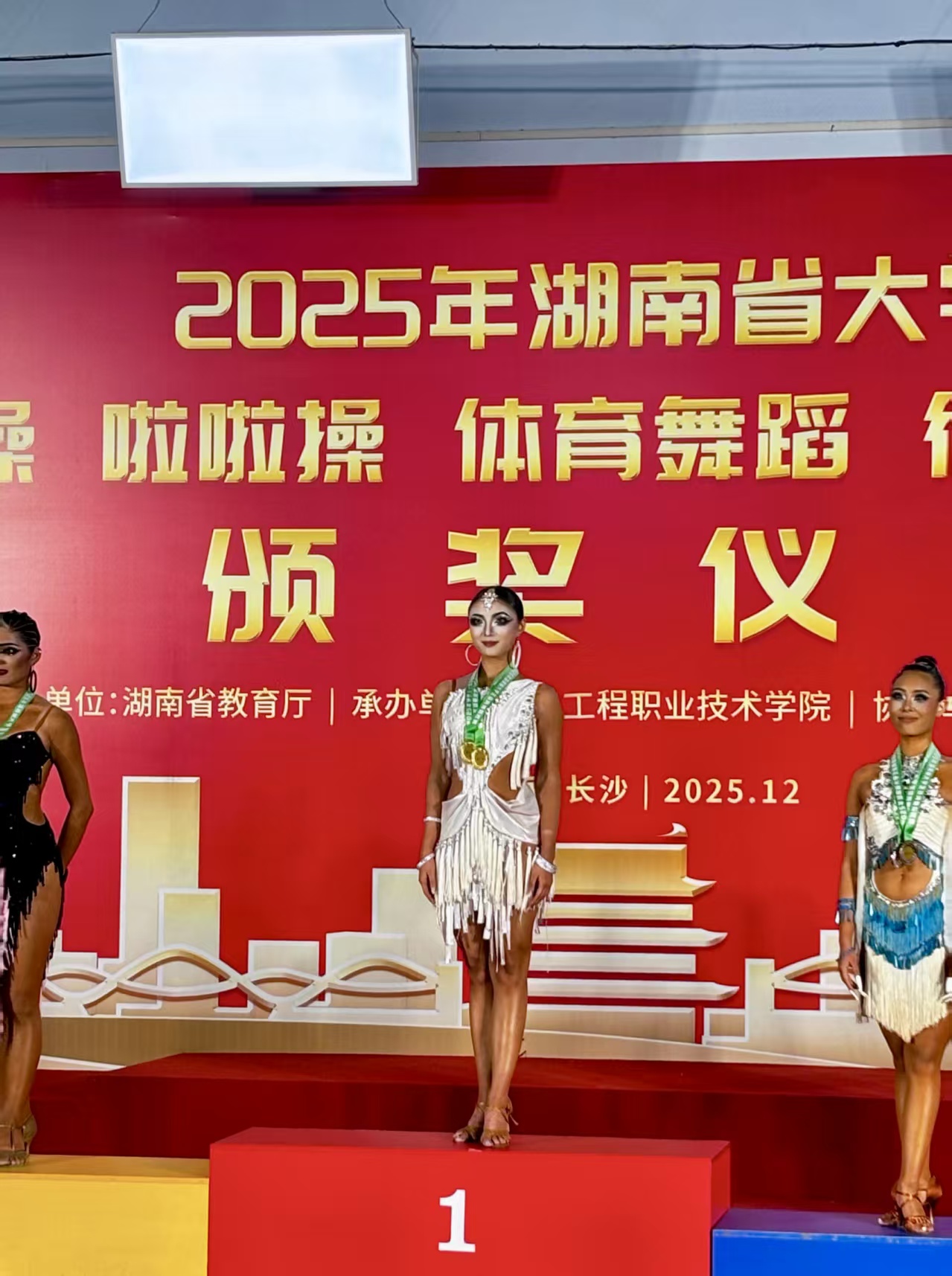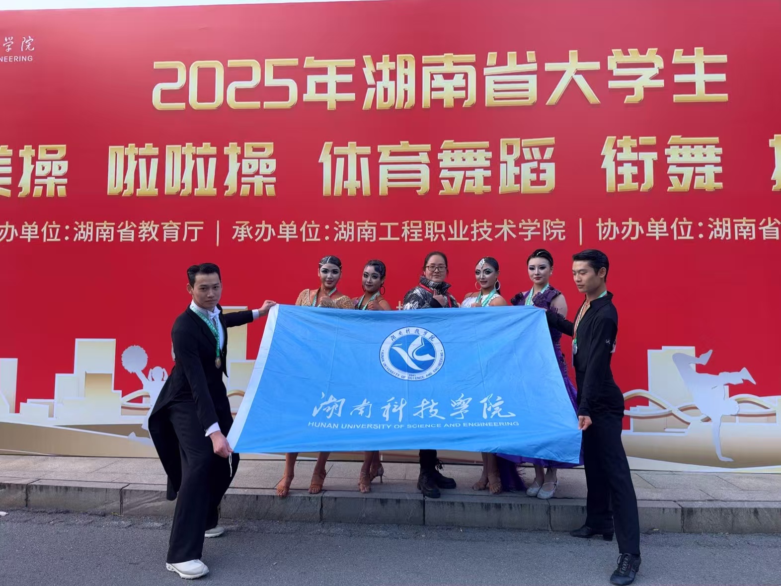 本网讯(通讯员:刘雅欣)近日,由湖南省教育厅主办、湖南工程职业技术学院承办的2025年湖南省大学生体育舞蹈比赛圆满落幕。bat365中文官方网站旅游与文化产业学院学子在比赛中表现卓越,凭借扎实的功底、默契的配合与富有感染力的表演,从众多高校选手中脱颖而出,斩获多项大奖。