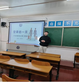 毕业于中国民航大学并在上海吉祥航空股份有限公司飞行经历长达2年以上的张承斌老师就“飞行四阶段之第二阶段”课题分别进行了30分钟的教学演示(图1-1),张承斌老师准备充分,学情分析精准,课程设计层次清晰,授课态度认真,教态自然,把理论知识和自己丰富从业经验相结合进行讲授(图1-2),课堂效果理想。