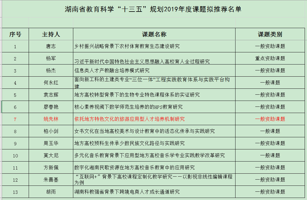 2019年3月22日下午,学校召集学术委员会专家对bat365官网申报的2019年度湖南省教育科学十三五规划课题进行了评审,现将推荐申报项目进行公示三天(2019年3月22日-2019年3月24日),如有异议,请在公示期内到科技处实名进行反映。