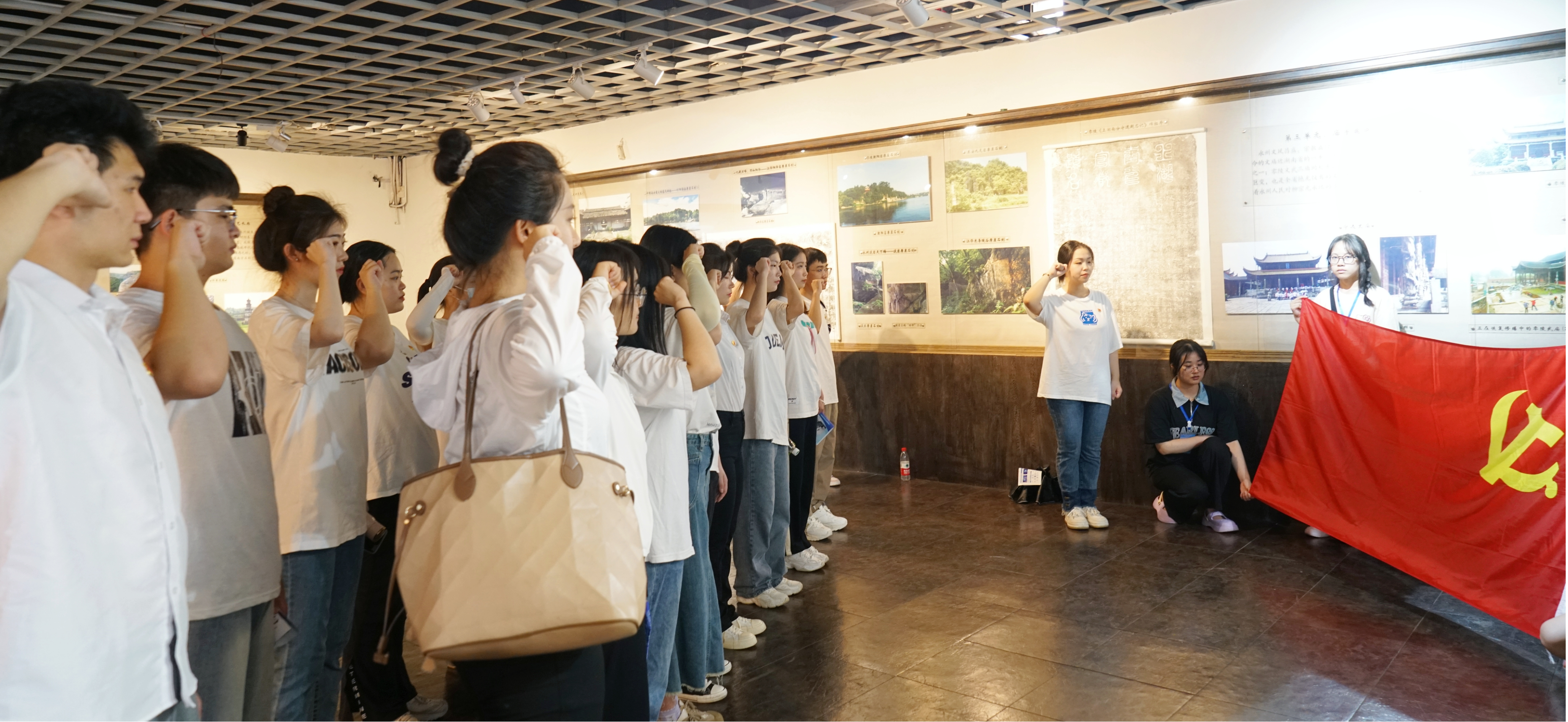 清晨,阳光明媚。志愿者们早早的来到弘毅楼门前集合,有序地向永州市博物馆出发。入馆后,党员同志们严格遵守馆内秩序,安静欣赏陈列文物。到达瑶族民俗馆时,大家仔细听着讲解员解说文物历史,仿佛声临其境,沉浸于永州浓厚的历史与文化中。大家了解完江永女书、永州石雕等文化底蕴后便开始自由参观。最后大家重温入党誓词,筑牢初心使命。