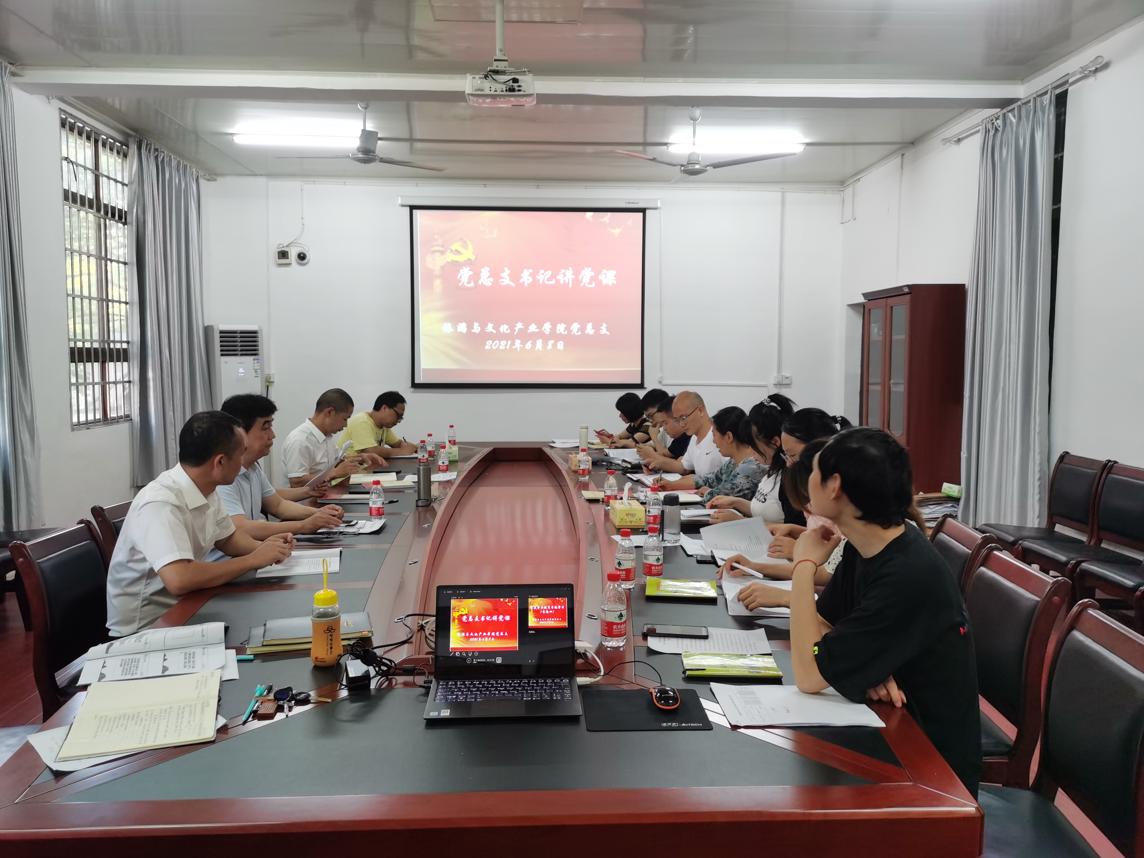 本网讯 6月8日下午,为深入学习党的精神锻造史,教育广大党员从百年党史中感悟党的向心力、凝聚力和动员力,我院党总支书记杨再喜在荟英楼306上“学史历行”专题党课,学院全体教师党员参加。