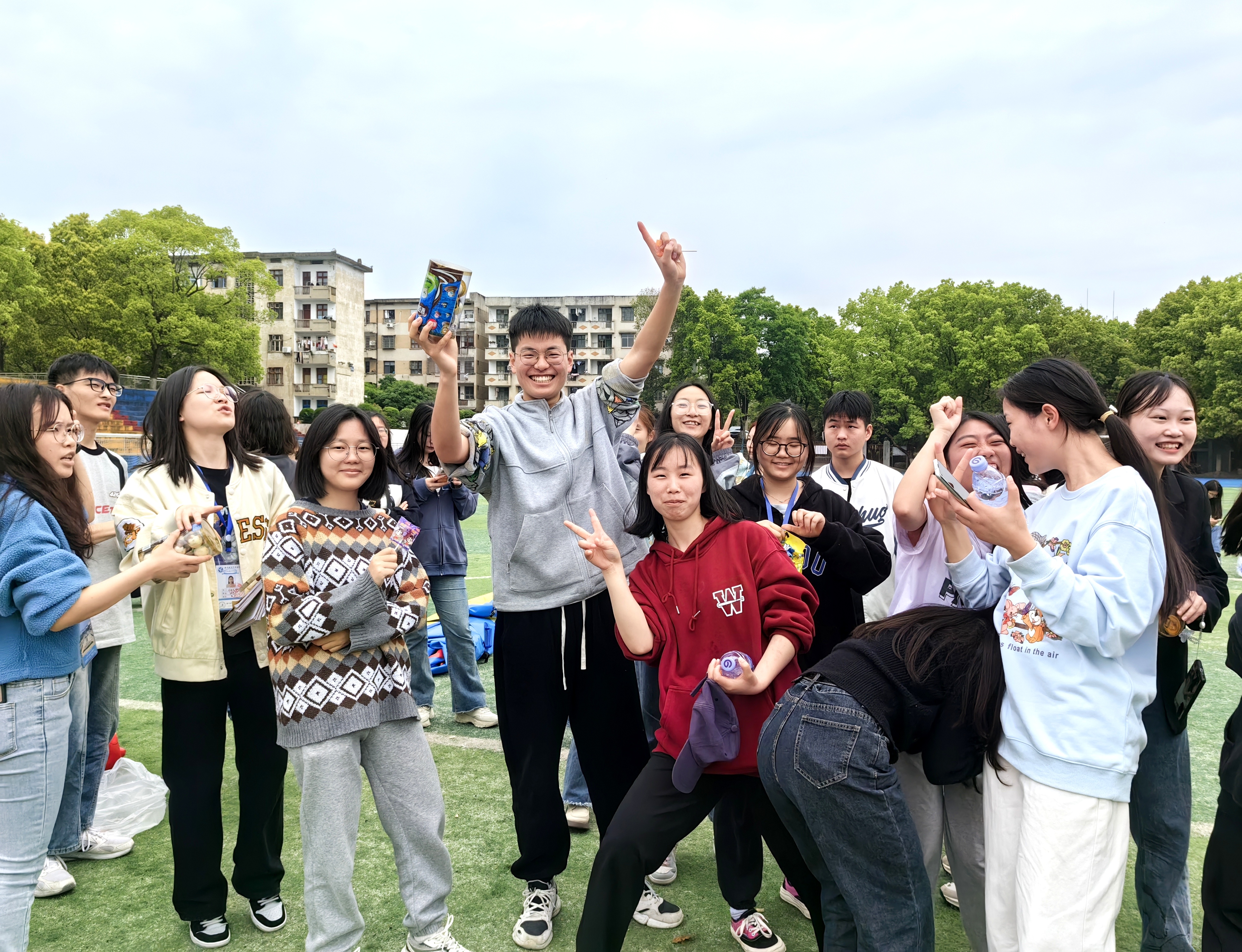 活动现场大家热情洋溢,展现了学生干部的朝气与活力,也呈现出了大家团结一心、勇争一流的良好精神风貌。班长王浩同学前段时间腿部受伤,本可以请假,但他仍然拄着双拐来到现场观看或参加可以参加的项目,师生纷纷为他的坚强和团队精神点赞。