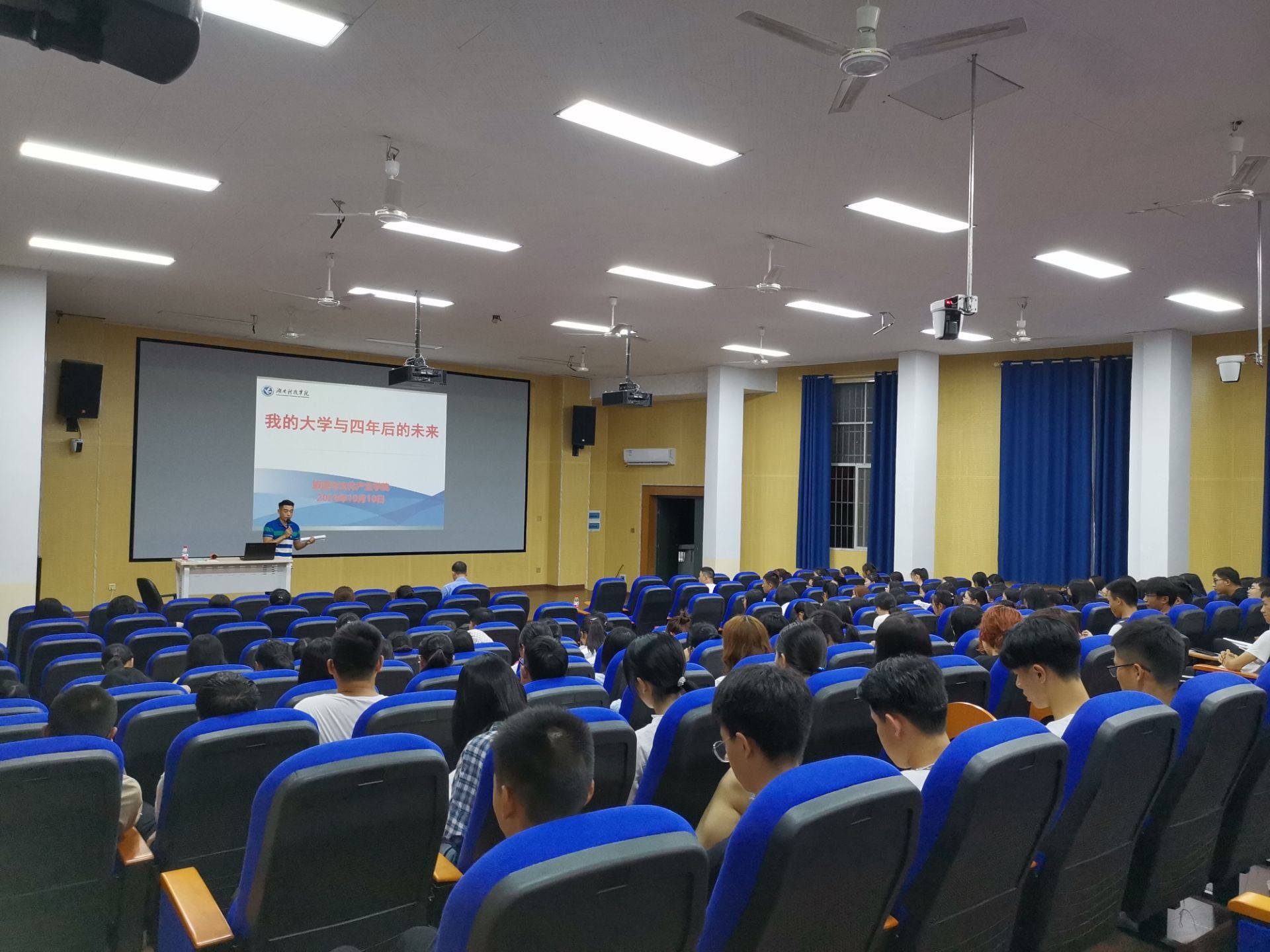 本网讯(通讯员 兰桂红)为促使新生尽早确立目标,有效利用大学时间,我院于10月10日晚在博雅楼西三举行了“我的大学四年与四年后的未来”入学教育讲座。讲座由我院党总支副书记潘清远主持,14级校友徐明主讲,19级全体新生参加。