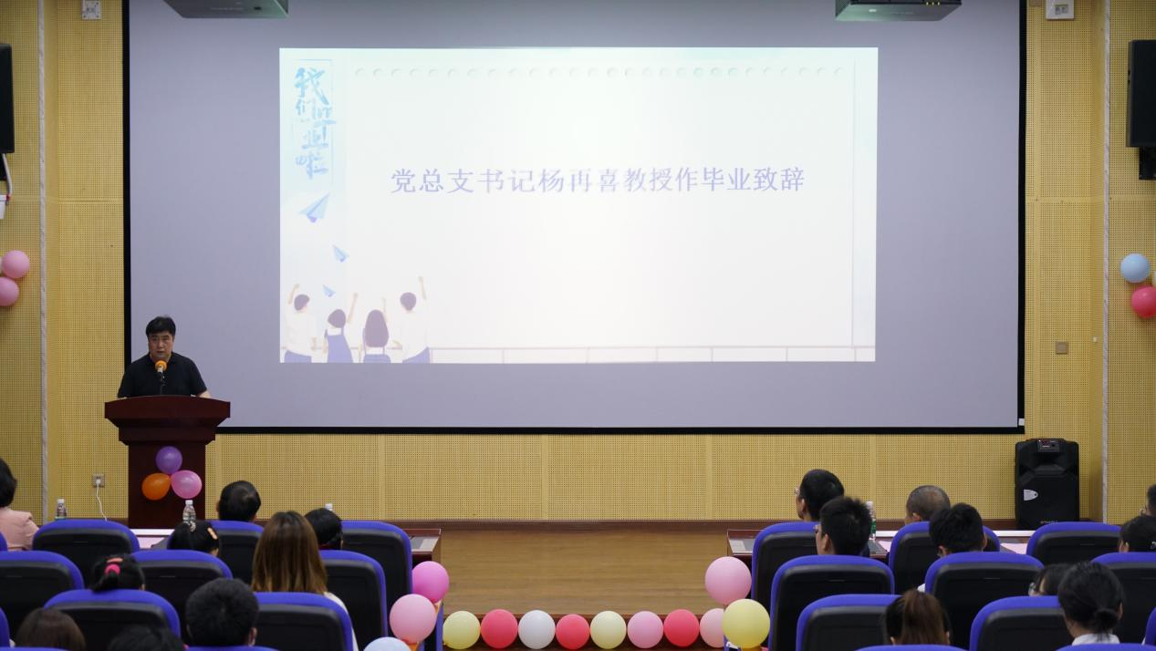 毕业欢送会环节,杨再喜作毕业致辞,从家国情怀、人生理想等方面既对毕业进行了教育,同时也表达了对毕业生们的殷切希冀。