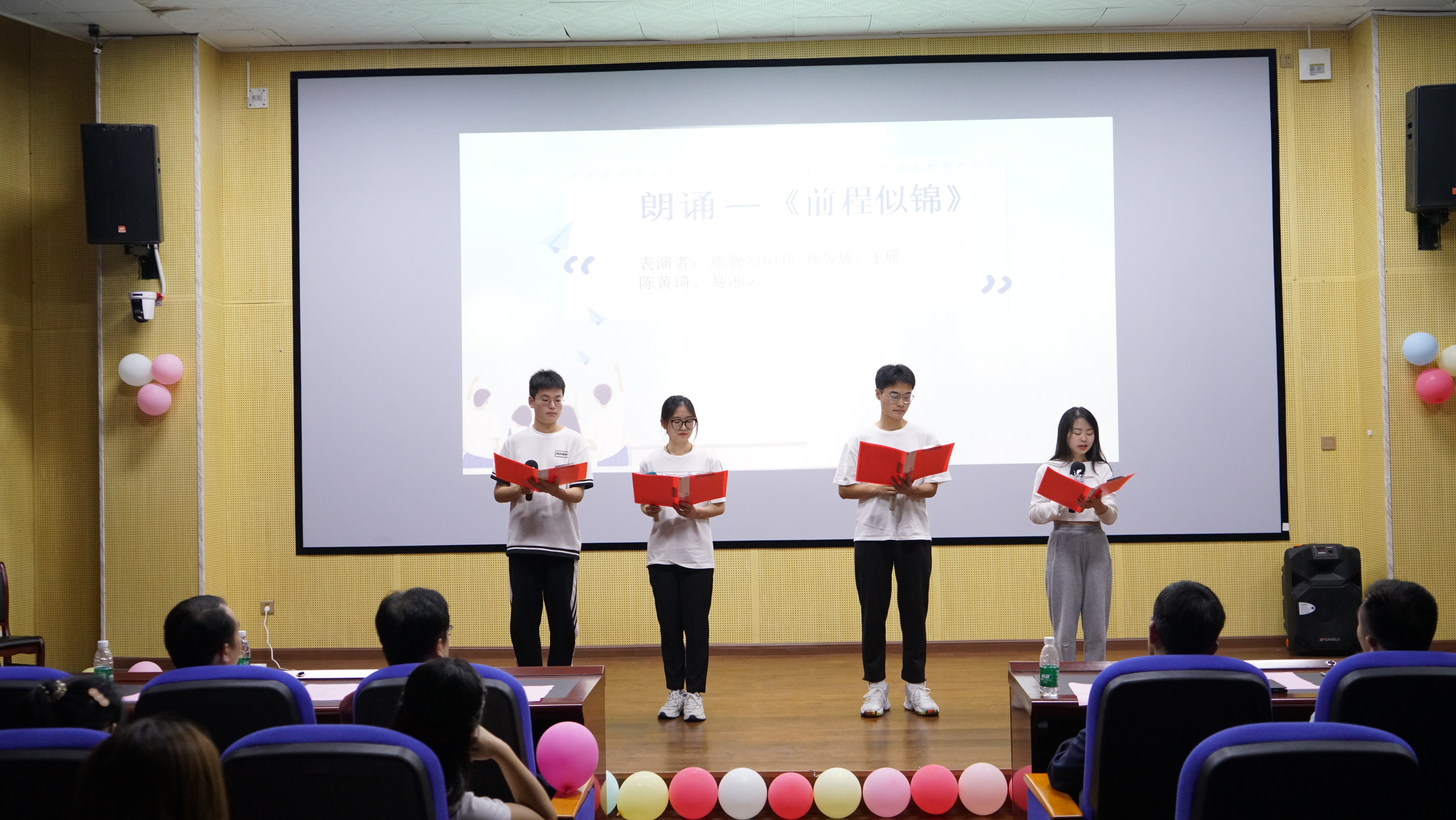 表演节目由“蚕、茧、蛹、蝶”四个主题构成,也分别代表了大学四年的不同状态,最后破茧成蝶。唱歌、跳舞、古琴、朗诵等引起了同学们的不舍和眷念,也传递着美好的祝福。与会领导老师的献唱更把整个晚会的气氛推向了高潮。