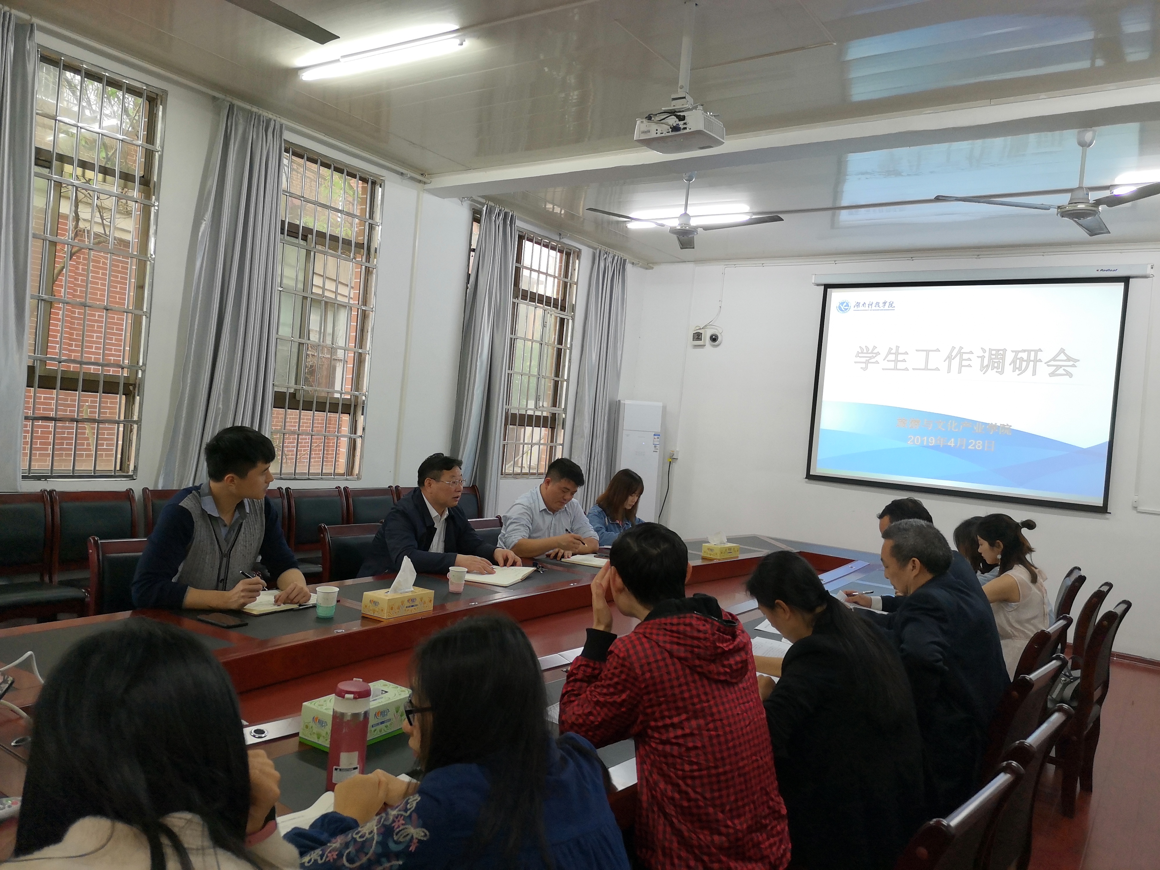 4月28日,学工部部长唐华山、副部长胡敏辉一行来我院调研学生工作,院党总支书记李年终、党总支副书记潘清远,辅导员、班主任、学生代表参加会议。