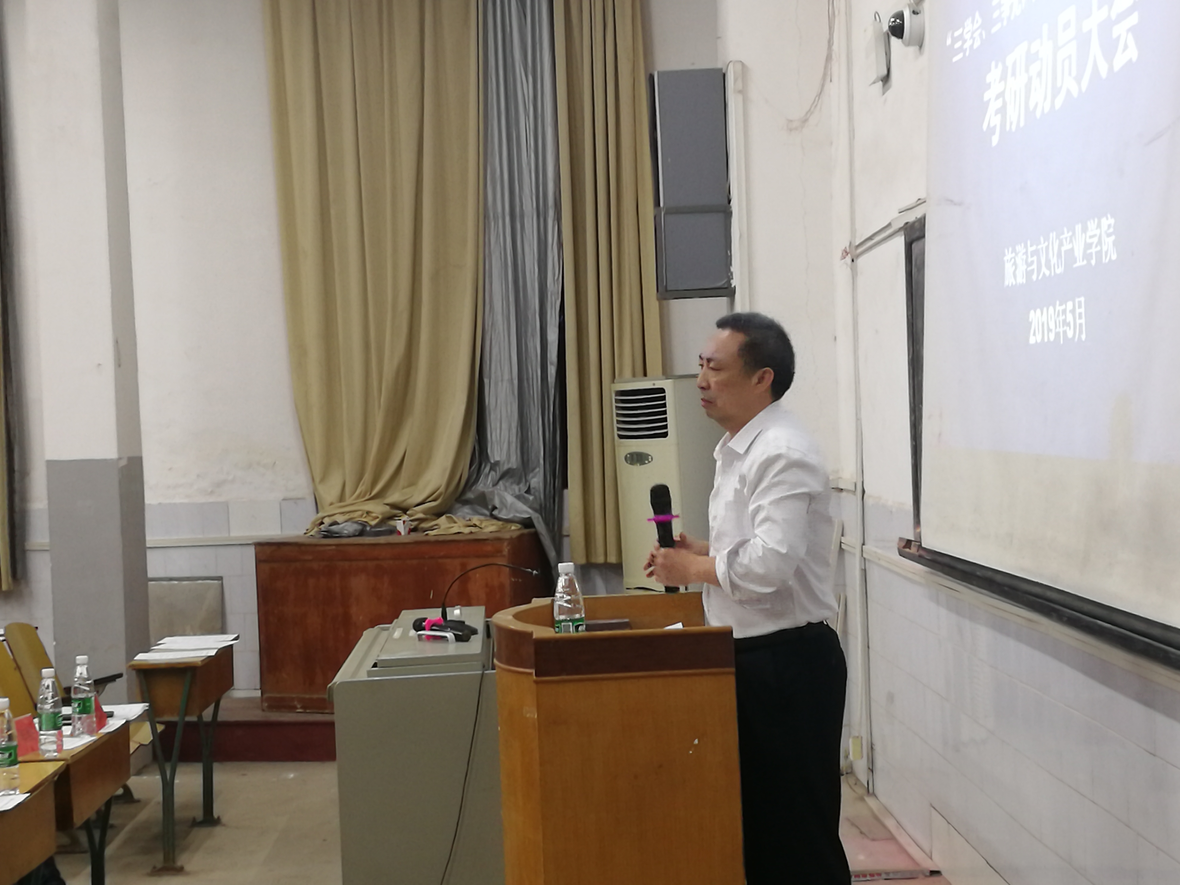 本网讯(通讯员 尹遥)为进一步加强学风建设,提高学院学生的考研积极性,旅游与文化产业学院于5月21日在博雅楼西三举行考研动员大会。院党总支书记李年终、副院长姚先林、旅游管理系主任李晓红出席会议。会议由党总支副书记潘清远主持。学院大一至大三全体学生参加会议。