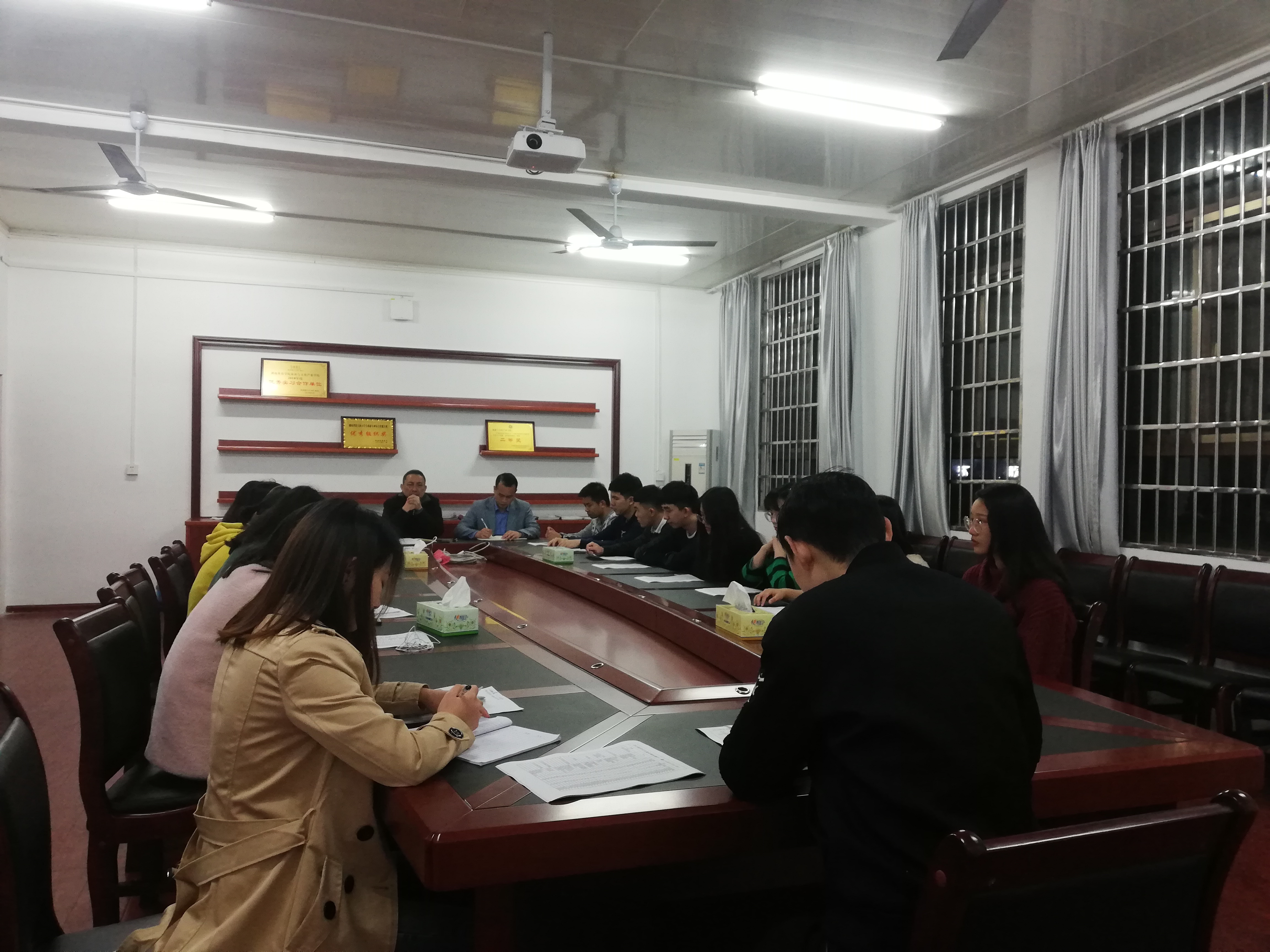 本网讯(通讯员 尹遥)4月10日晚,我院于荟英楼306会议室召开实习就业专题座谈会。院党总支书记李年终、党总支副书记潘清远、学工办副主任肖可出席会议。2015级学生党员、班干部、实习队长参加会议。