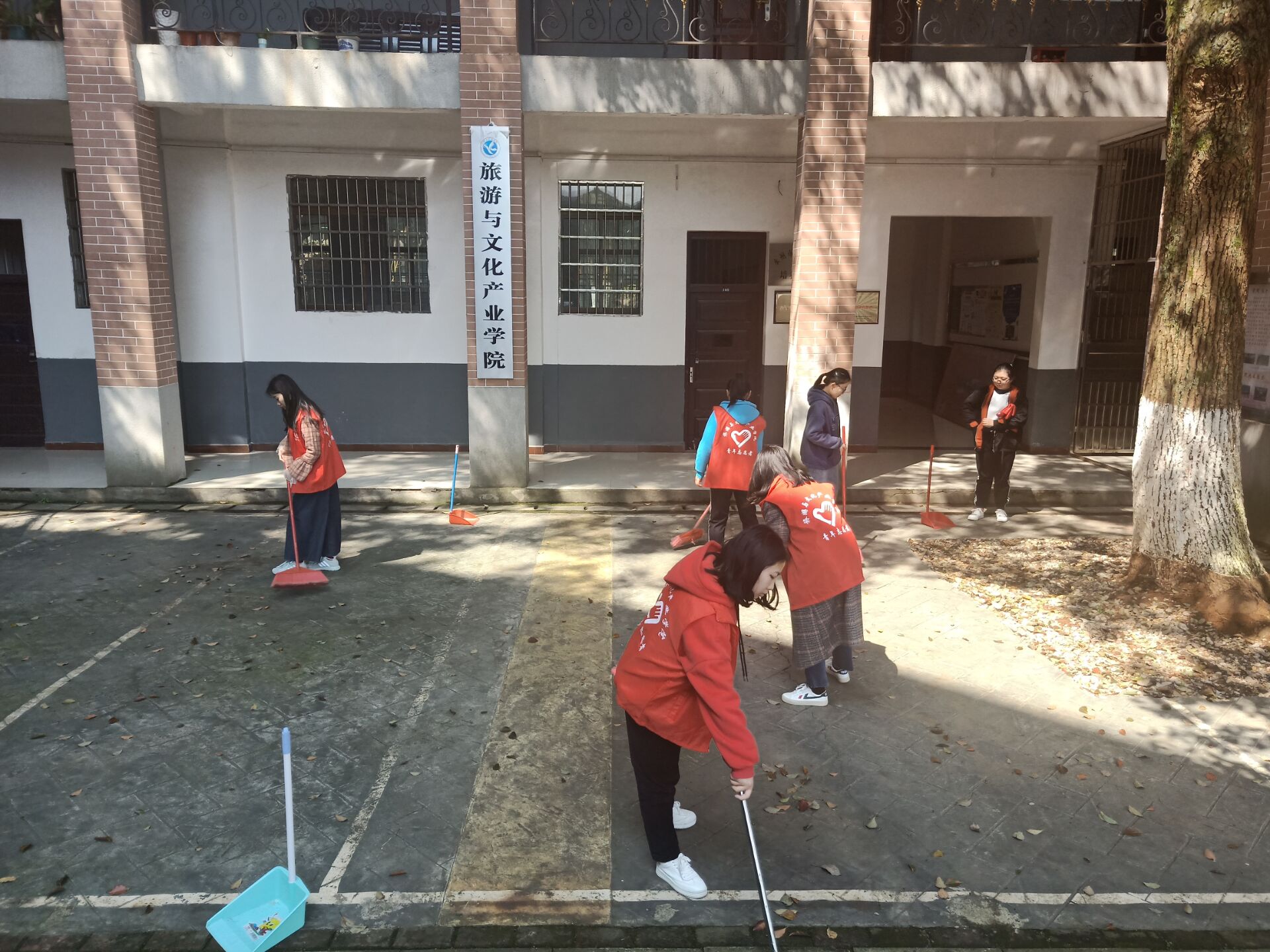 活动中,同学们不怕脏、不怕累,全身心地投入到义务劳动中。志愿者们把荟英楼及周边区域的落叶、垃圾进行了全面清理。经过志愿者们近一个小时的清扫,荟英楼变得更加得美丽,志愿者们也纷纷露出了开心的笑容。