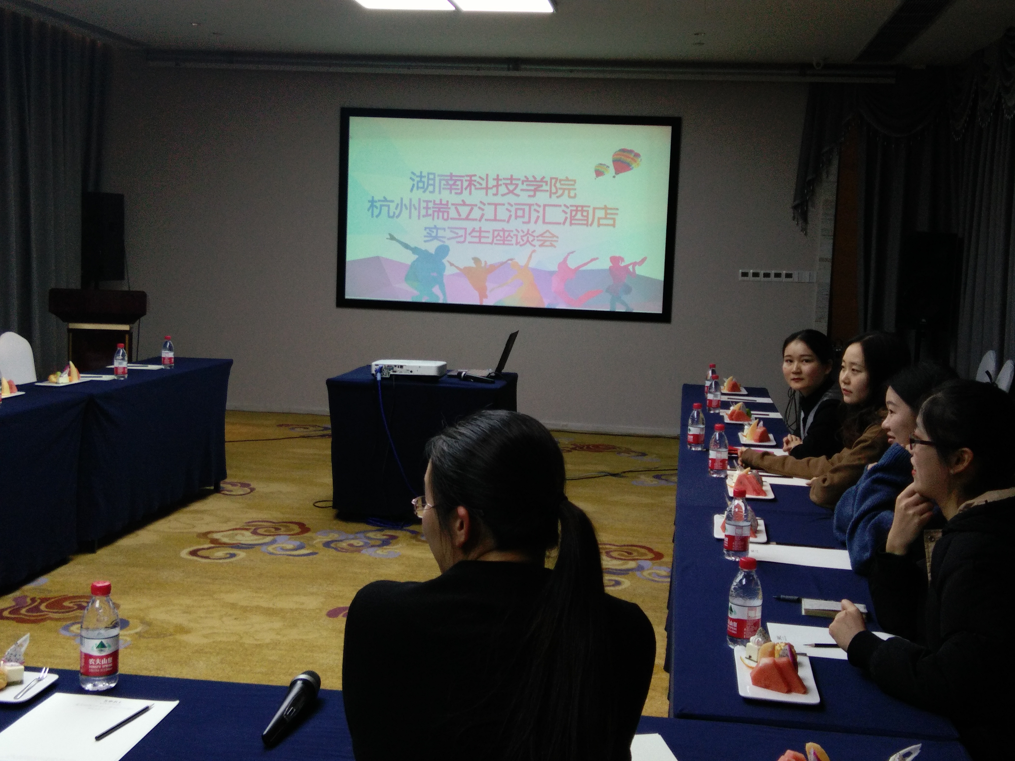 本网讯(通讯员 彭苇怡)为深入了解同学们的实习情况,有效解决实习期间的问题,旅游与文化产业学院院长黄渊基,学工办副主任肖可,实习指导老师刘幼平、易慧玲一行于12月25日至29日赴杭州瑞立江河汇酒店、杭州盛泰开元名都大酒店、杭州英冠温德姆酒店、宁波钱湖宾馆、广州南沙花园酒店及东莞万达文华酒店六个实习基地对学生实习工作进行了实地考察和座谈。
