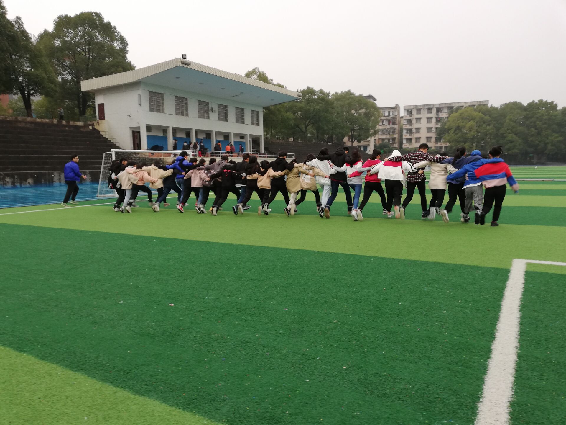 本网讯(通讯员 尹遥)“左、右”,“左、右”;“一、二”,“一、二”……田径场上传来此起彼伏的口令声。为了培养大学生的集体荣誉感、团队合作精神,11月12日下午,我院在田径场开展了绑腿跑活动,大一全体学生参与其中。