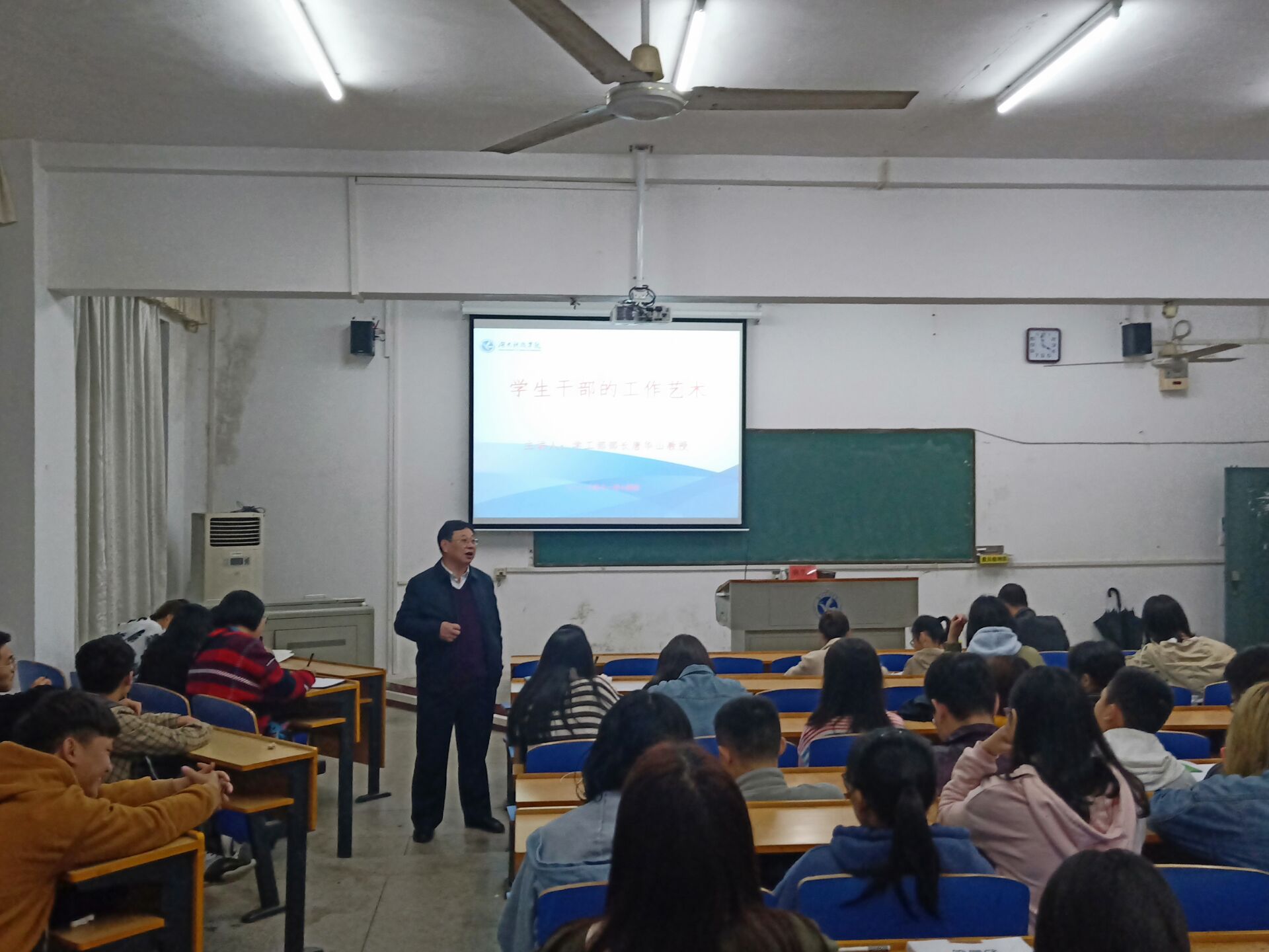 本网讯(通讯员 潘洵)为了进一步提升学生干部的工作艺术, 11月14日晚,旅游与文化产业学院在明德楼206开展了第二期学生干部培训,本次培训由校学工部长唐华山教授主讲,学院党总支副书记潘清远主持,学院全体学生干部参加培训。