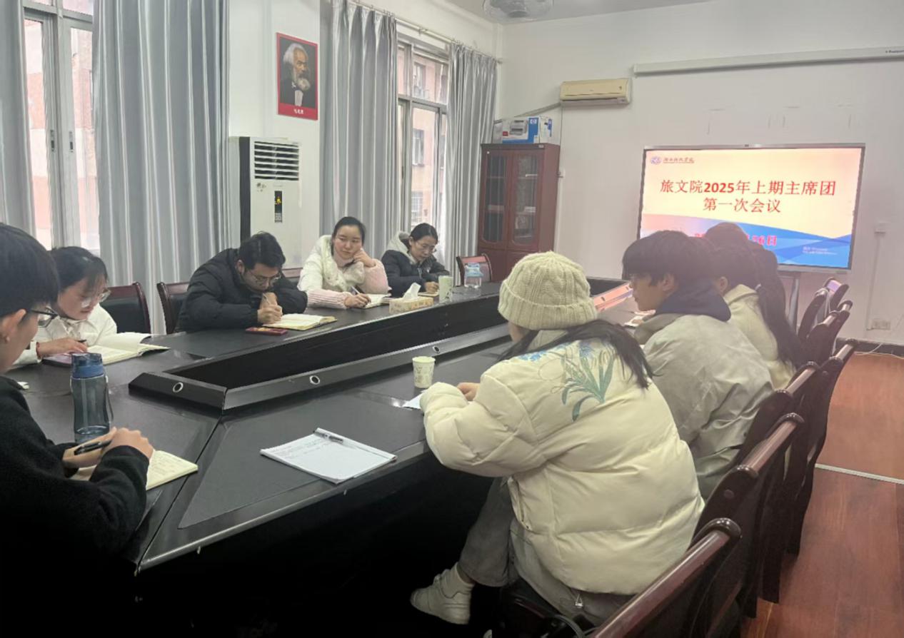 本网讯(通讯员:郭佳豪)为进一步明确新学期团学会工作方向,凝聚学生干部力量,推动各项工作高效开展。2月26日,旅文学院召开学生工作会议,本次会议由学工办副主任曾旎,辅导员李满、辅导员李思雨、主席团全体成员。会议聚焦新学期工作规划与学风建设,明确学生组织发展方向,凝聚师生合力共促学院建设,进一步引导学生干部以热情的服务、踏实的作风投入团学工作中。